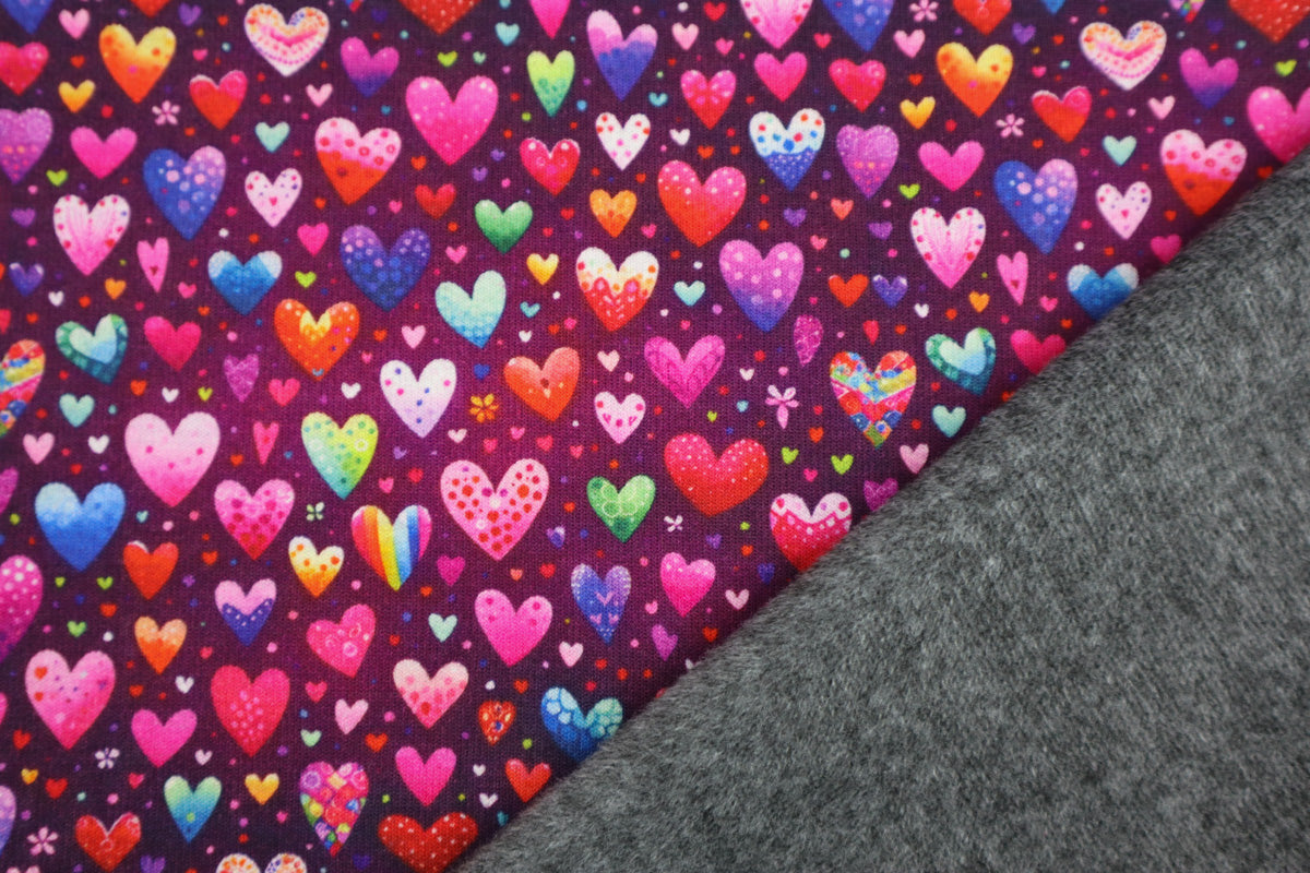 Die Vorderseite des Stoff ist Sweat, die Rückseite ist weicher, kurzer Fleece in Felloptik. Durch den Elasthan Anteil ist er angenehm elastisch und eignet sich super für Hoodies, Kleider, Hosen, Mützen, Loops und vieles mehr.