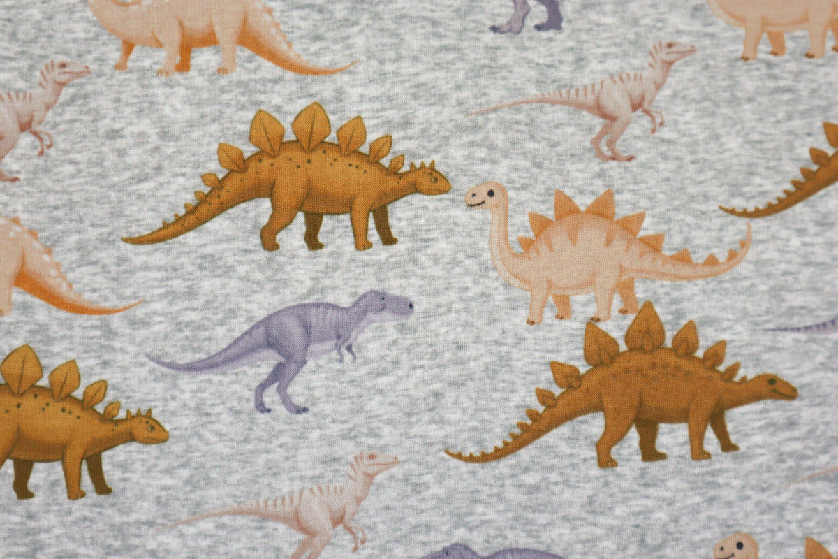 Schönes Muster mit verschiedenen Dinos auf meliertem Hintergrund.