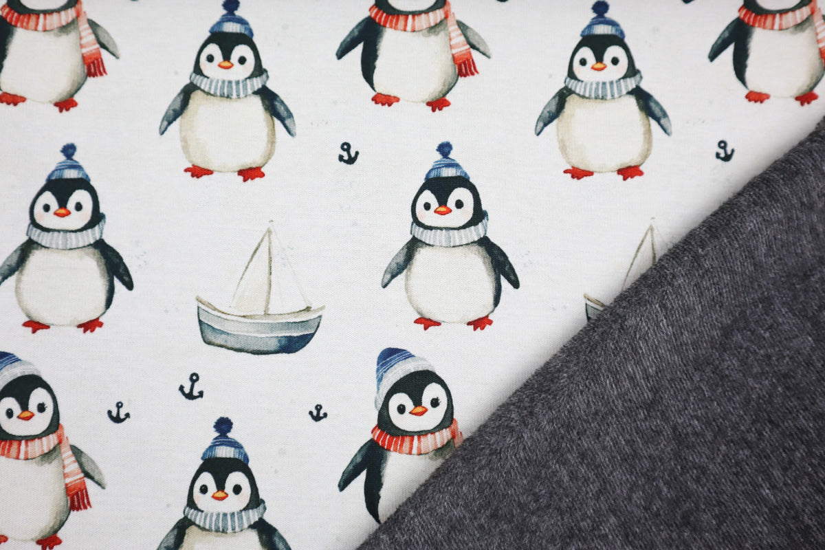 Die Vorderseite des Stoff ist Sweat, die Rückseite ist weicher, kurzer Fleece in Felloptik. Durch den Elasthan Anteil ist er angenehm elastisch und eignet sich super für Hoodies, Kleider, Hosen, Mützen, Loops und vieles mehr.