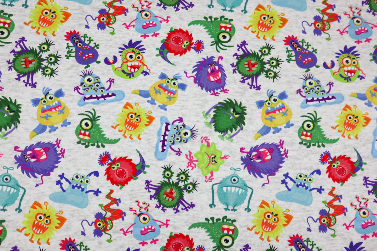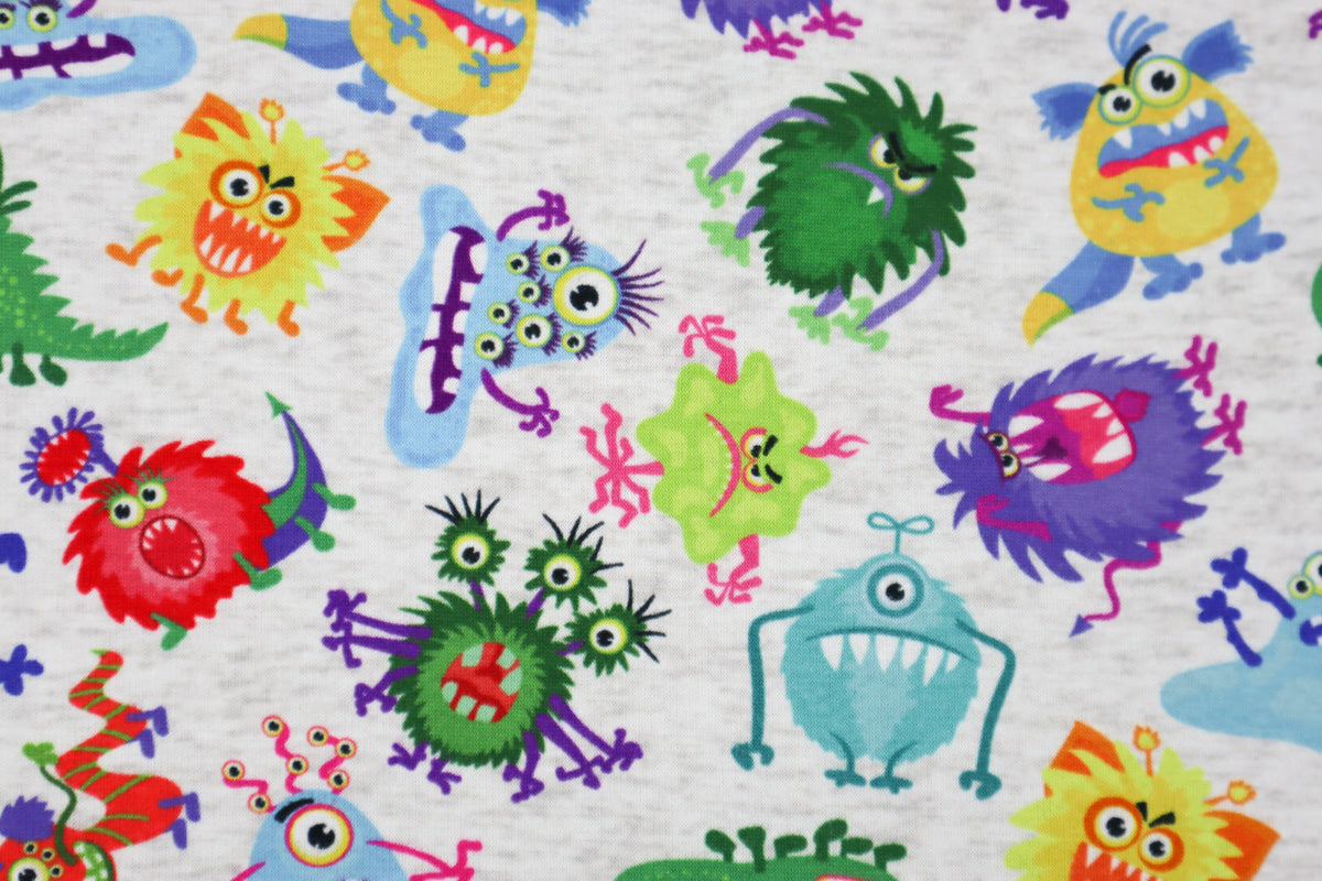 Die Monster Party ist in vollem Gange. Hier tummeln sich die buntesten und gruseligsten Monster auf meliertem Hintergrund.