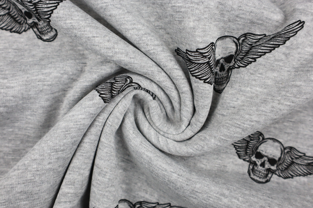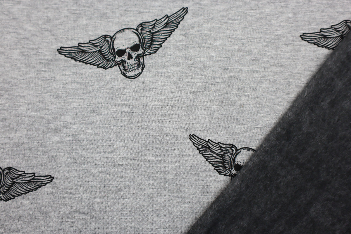 Die Vorderseite des Stoff ist Sweat, die Rückseite ist weicher, kurzer Fleece in Felloptik. Er eignet sich super für Hoodies, Kleider, Hosen, Mützen, Loops und vieles mehr.