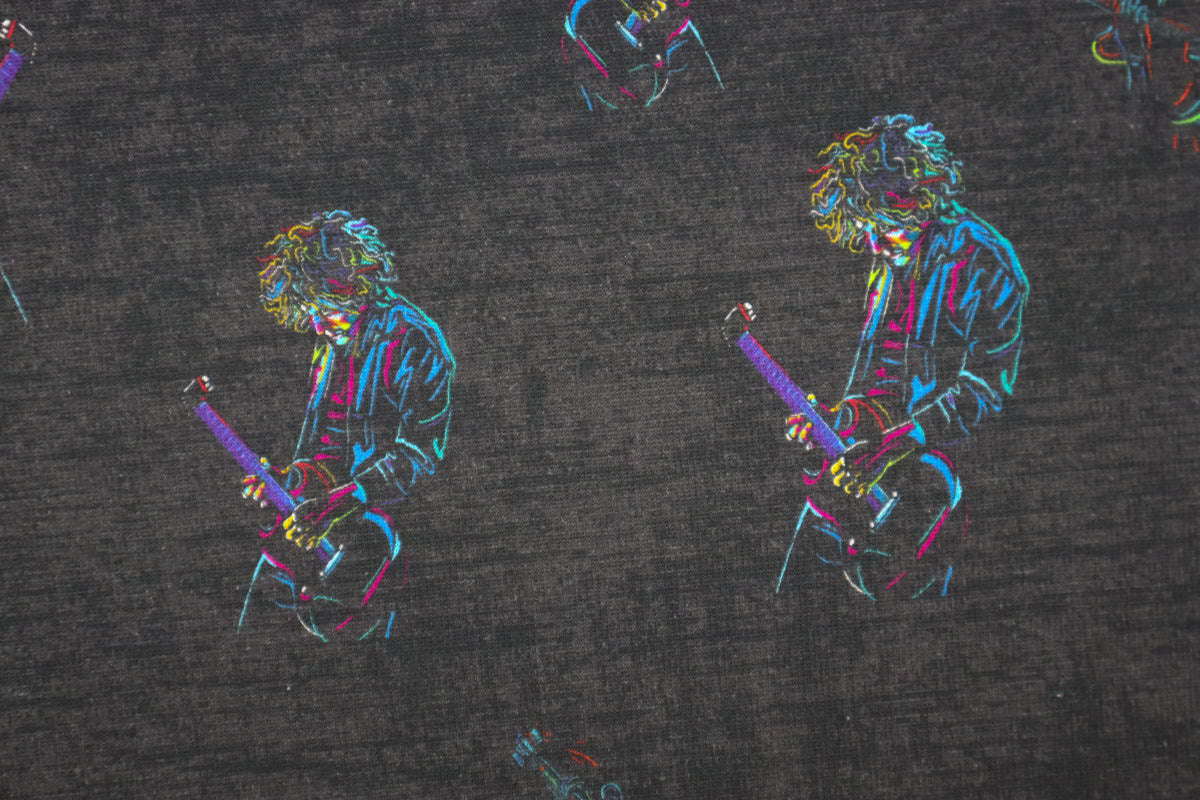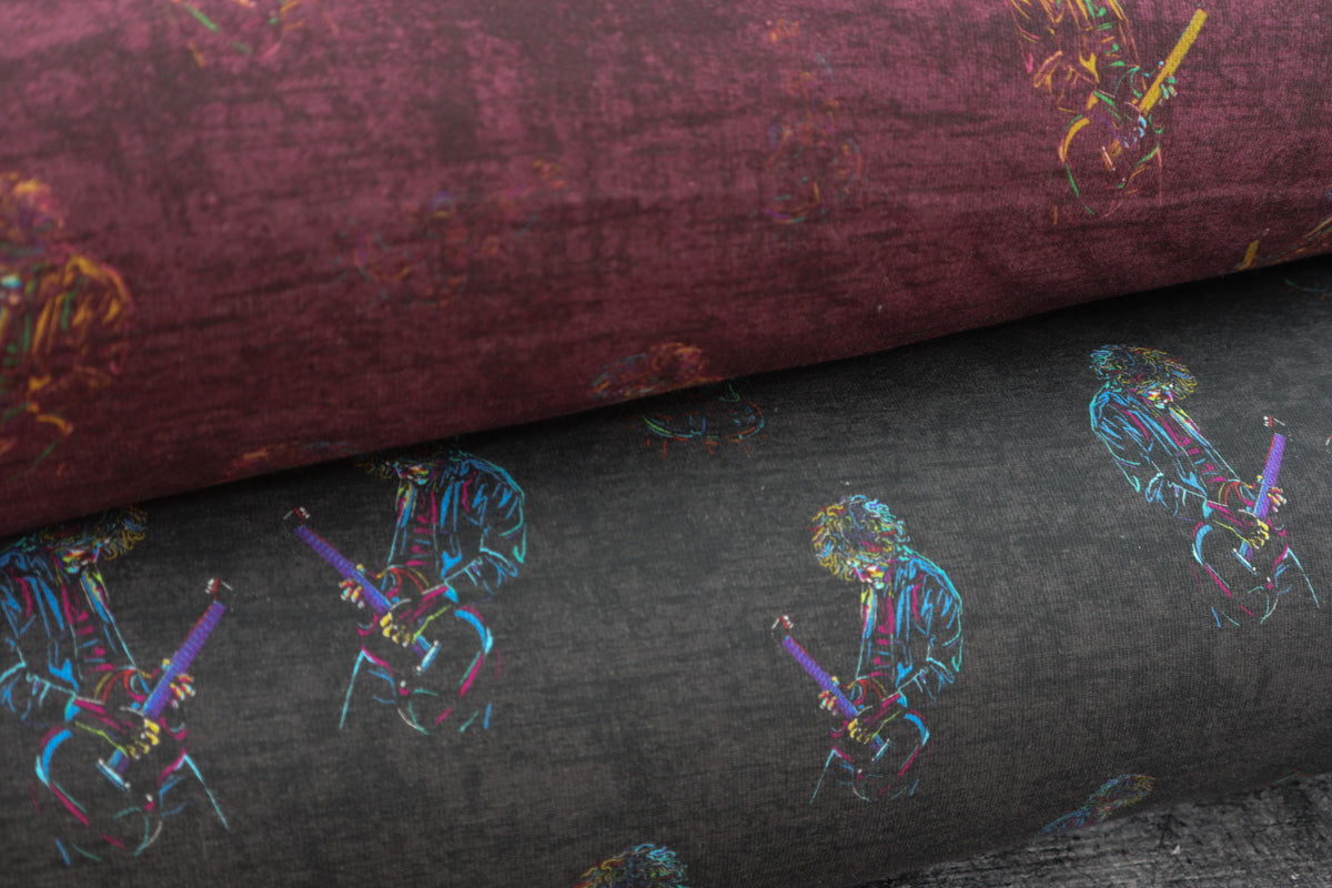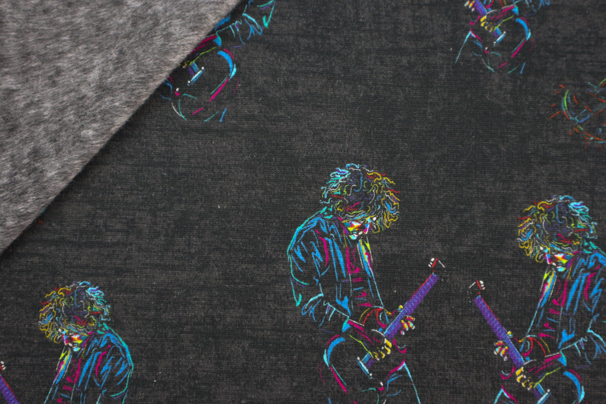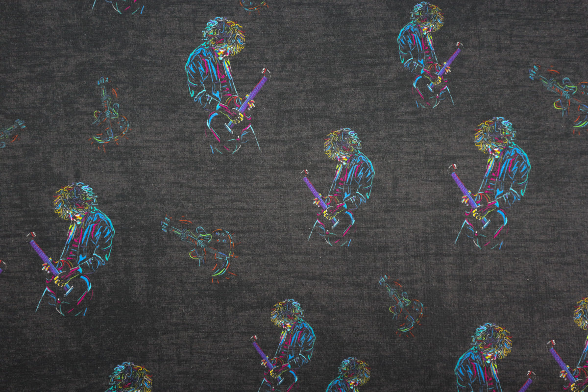 Cooles Muster mit bunten Gitarristen auf meliertem Hintergrund.