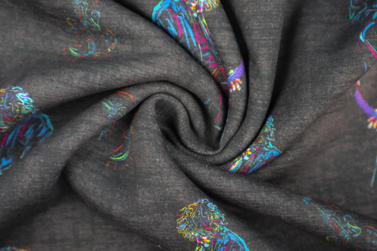 Die Vorderseite des Stoff ist Sweat, die Rückseite ist weicher, kurzer Fleece in Felloptik. Durch den Elasthan Anteil ist er angenehm elastisch und eignet sich super für Hoodies, Kleider, Hosen, Mützen, Loops und vieles mehr.