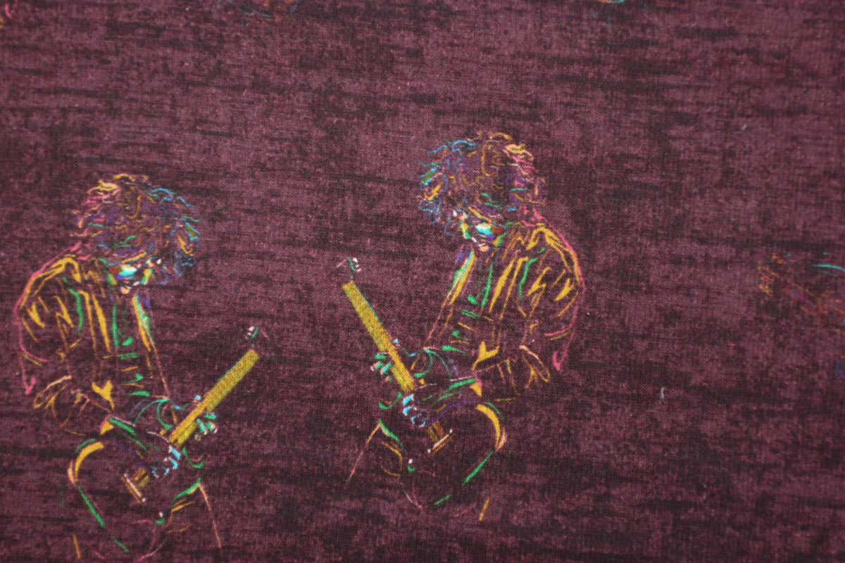 Cooles Muster mit bunten Gitarristen auf meliertem Hintergrund.