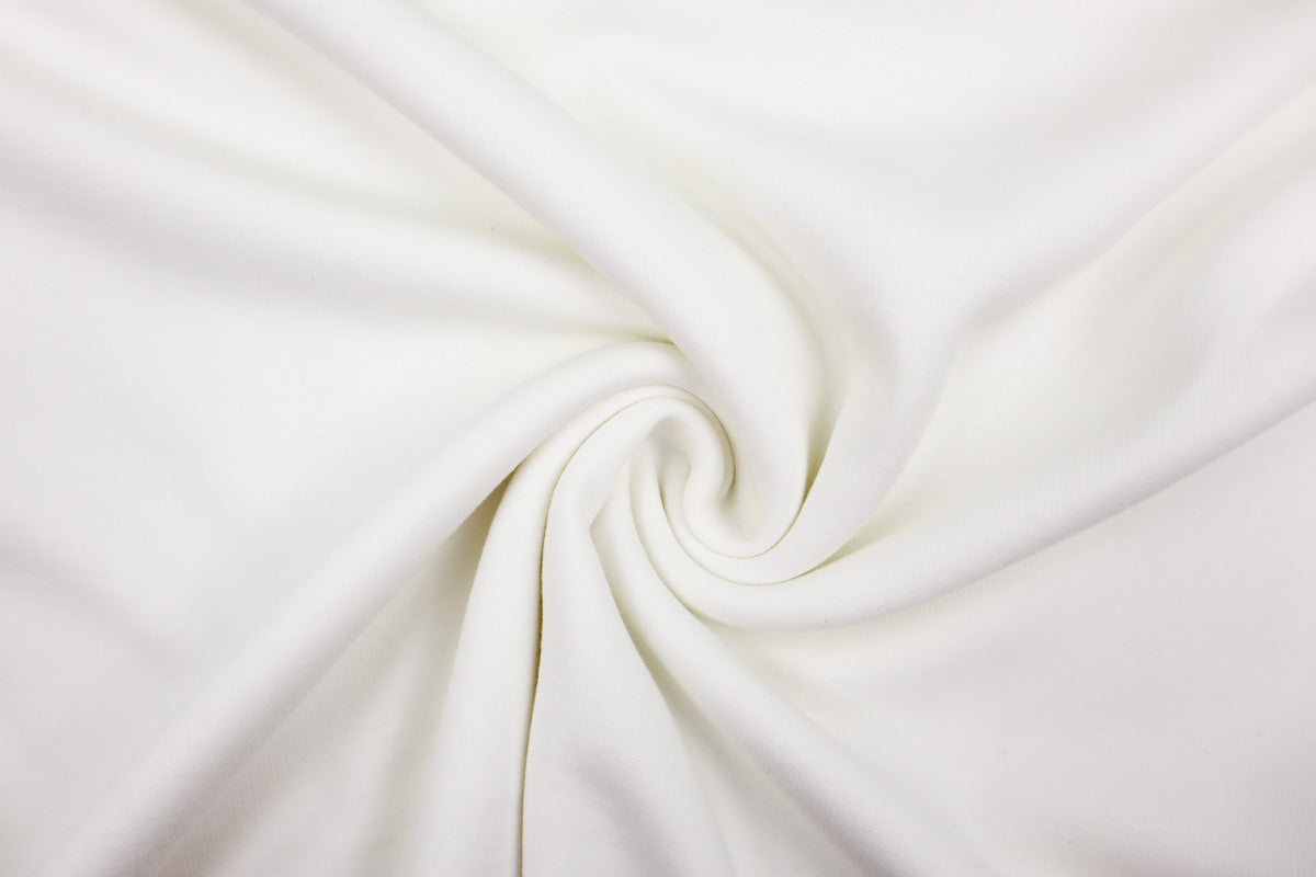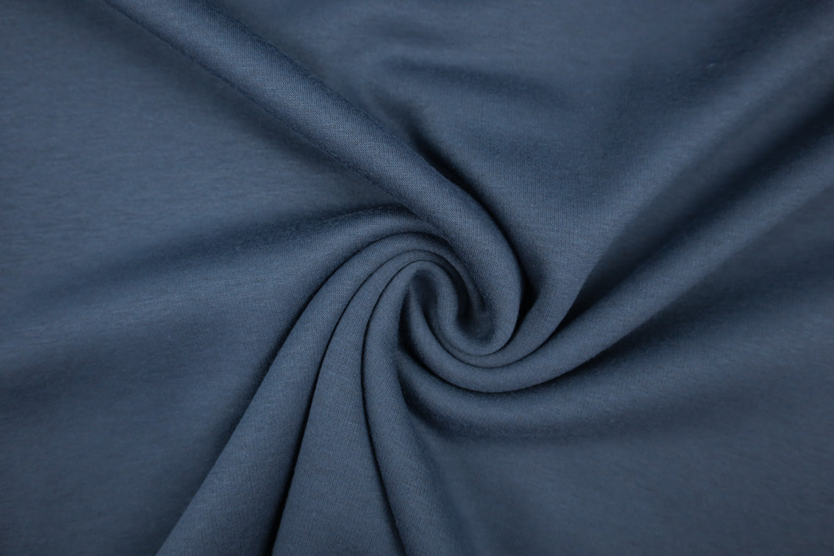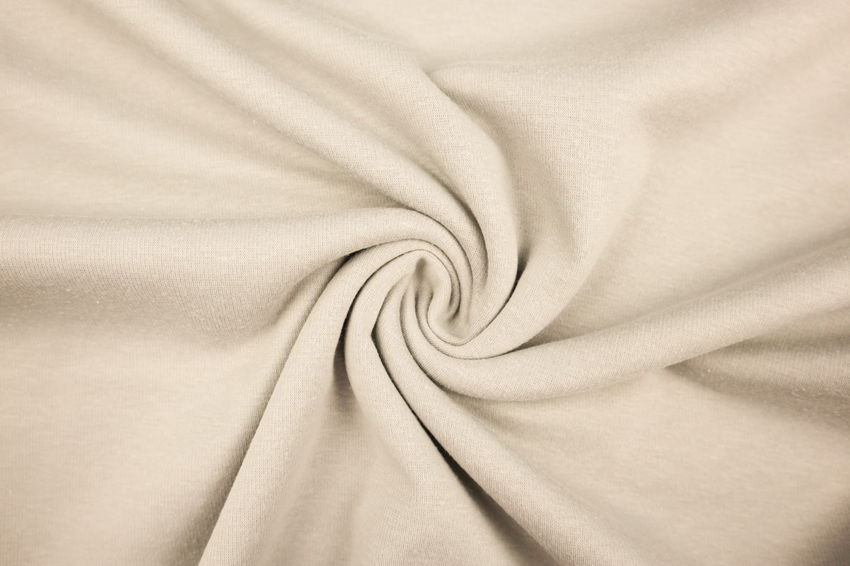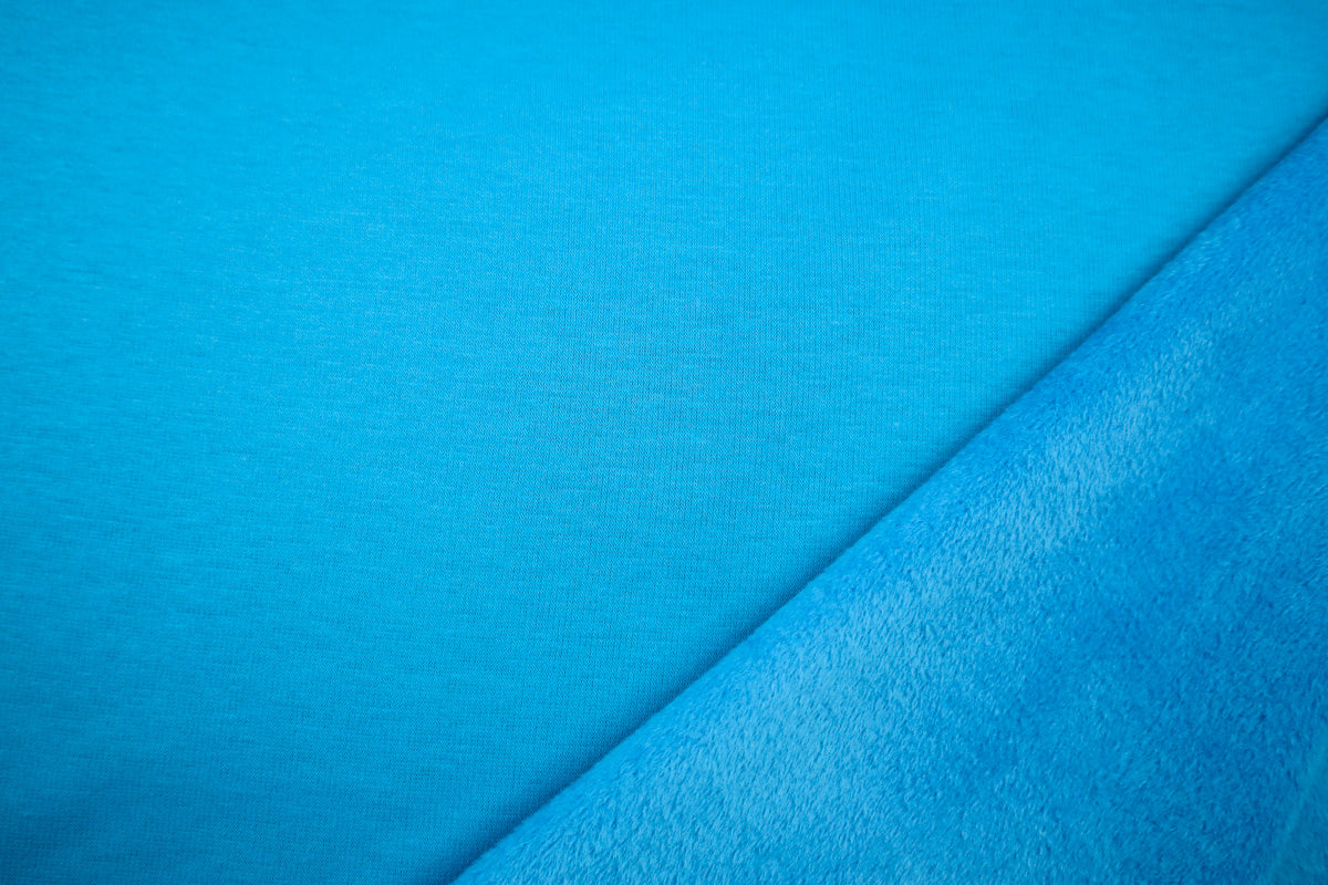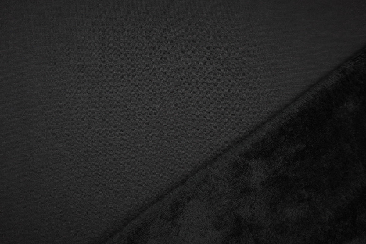 Die Vorderseite des Stoffes ist Sweat, die Rückseite ist weicher Fleece in Felloptik in gleicher Farbe.