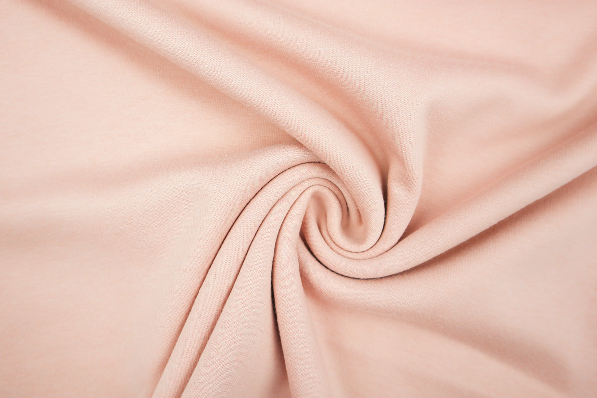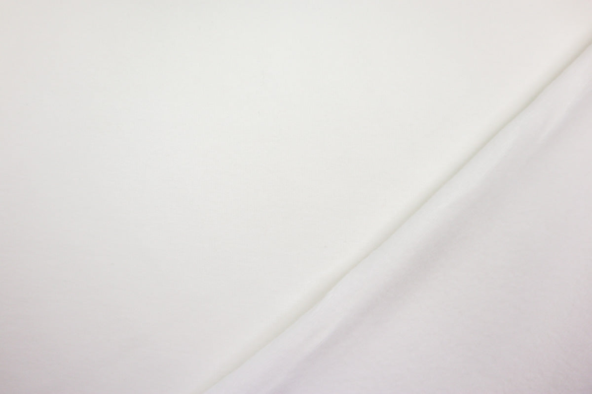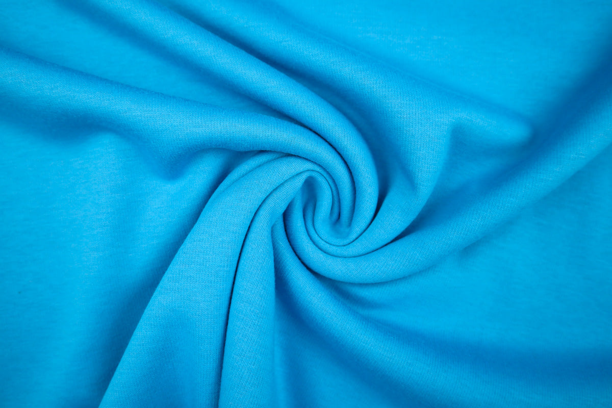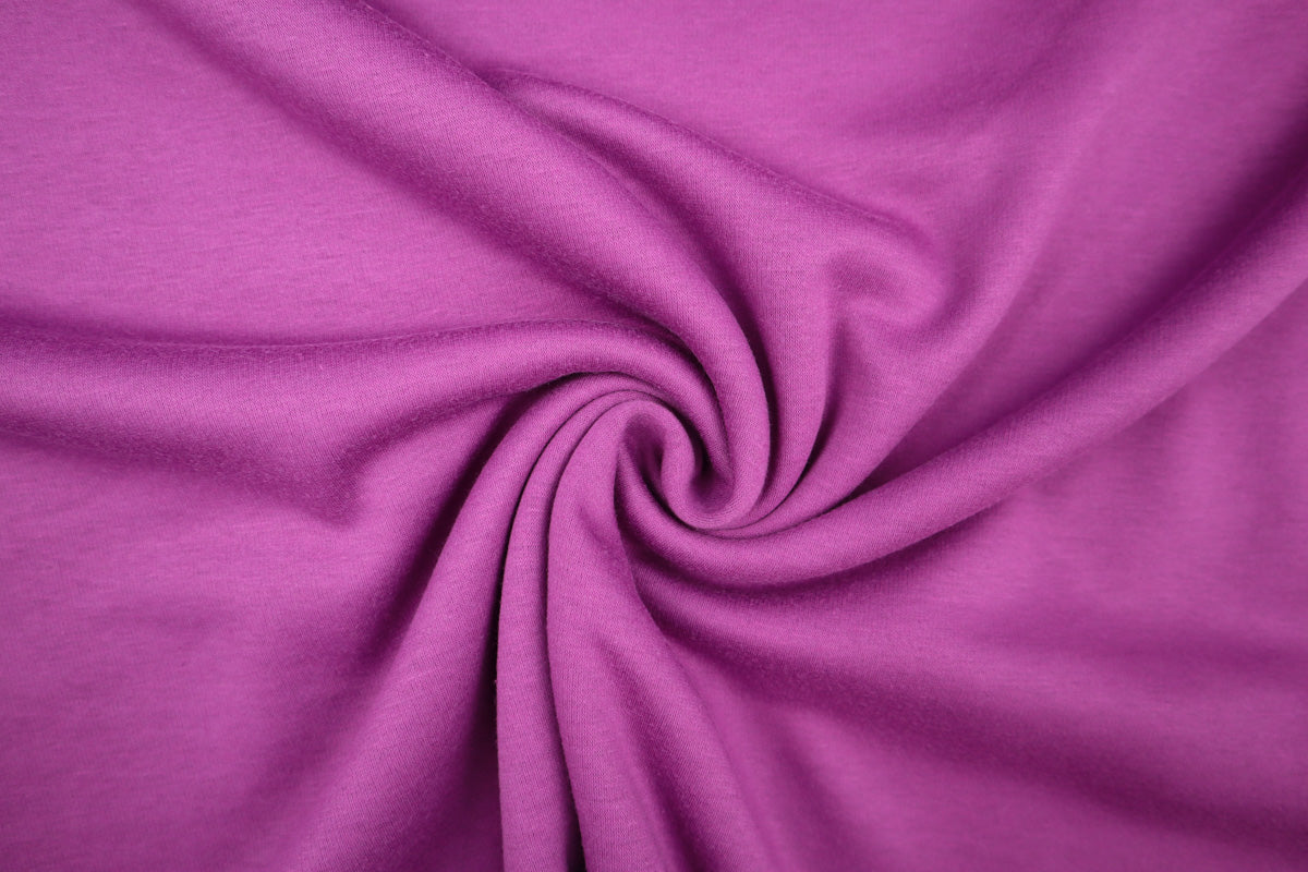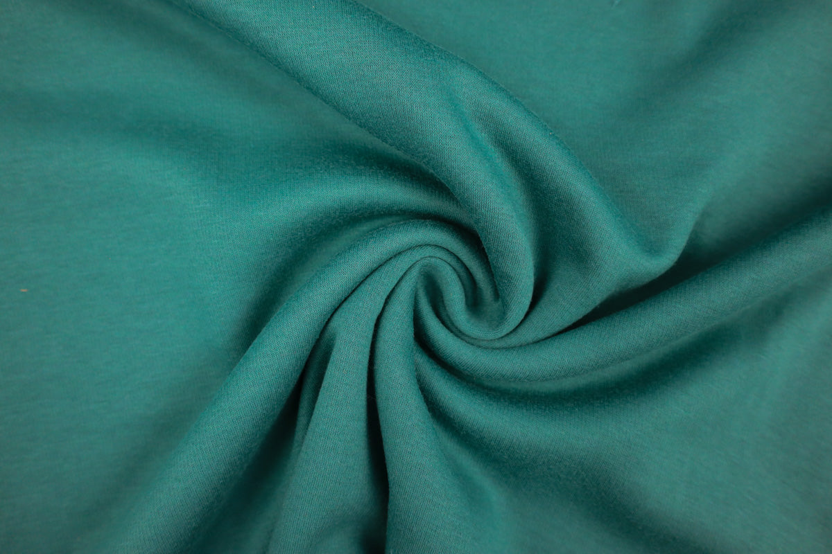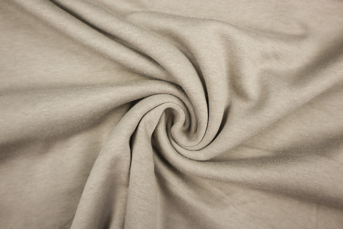 Die Vorderseite des Stoffes ist Sweat, die Rückseite ist weicher Fleece in Felloptik in gleicher Farbe.