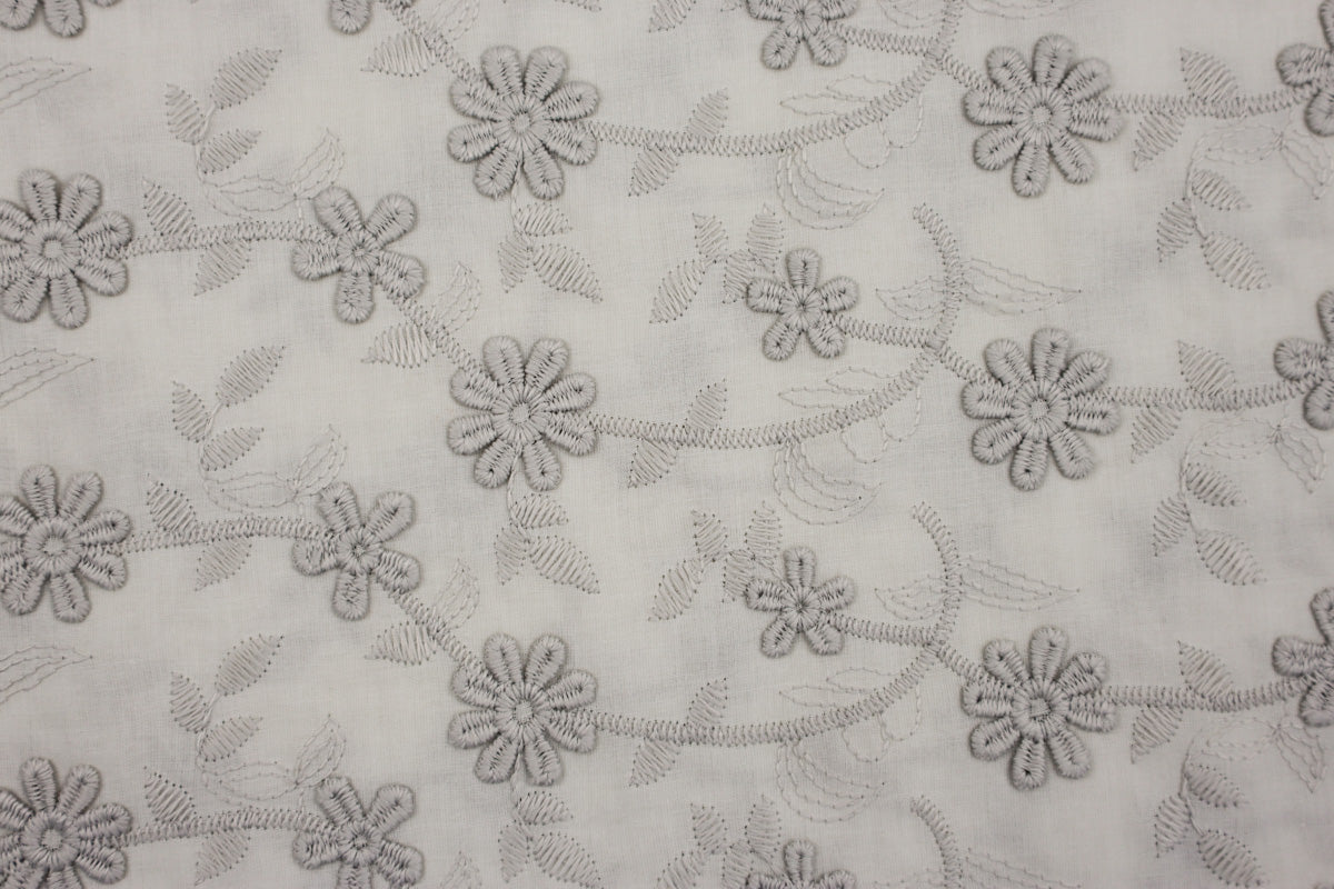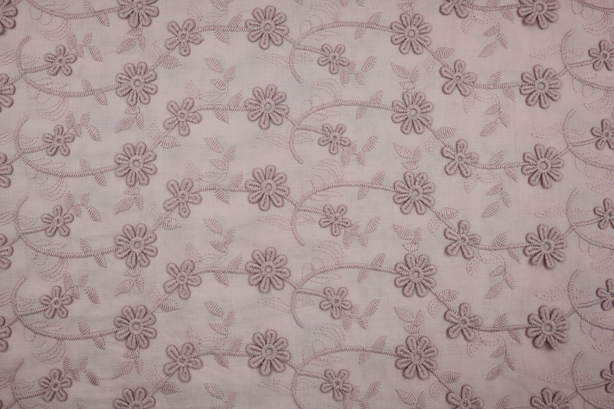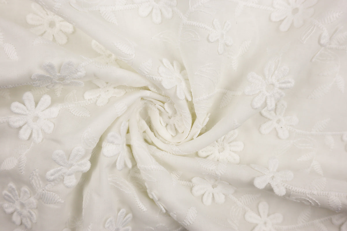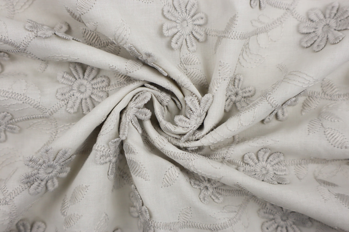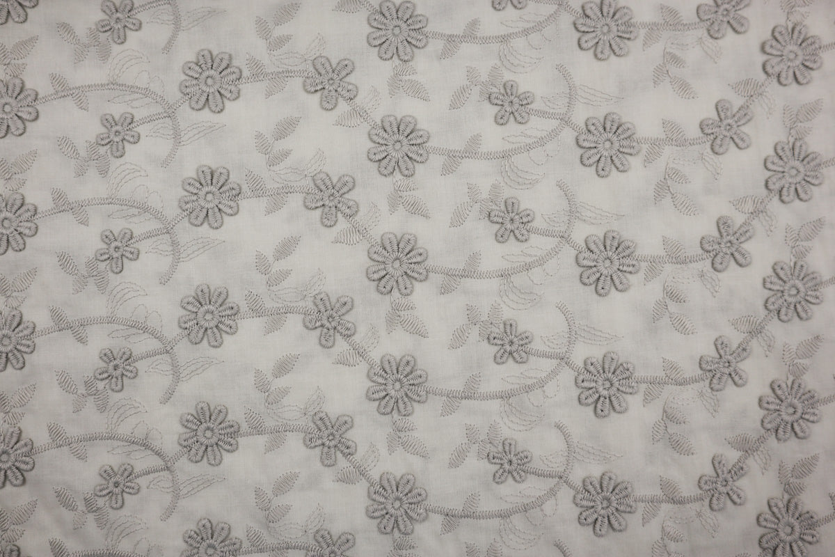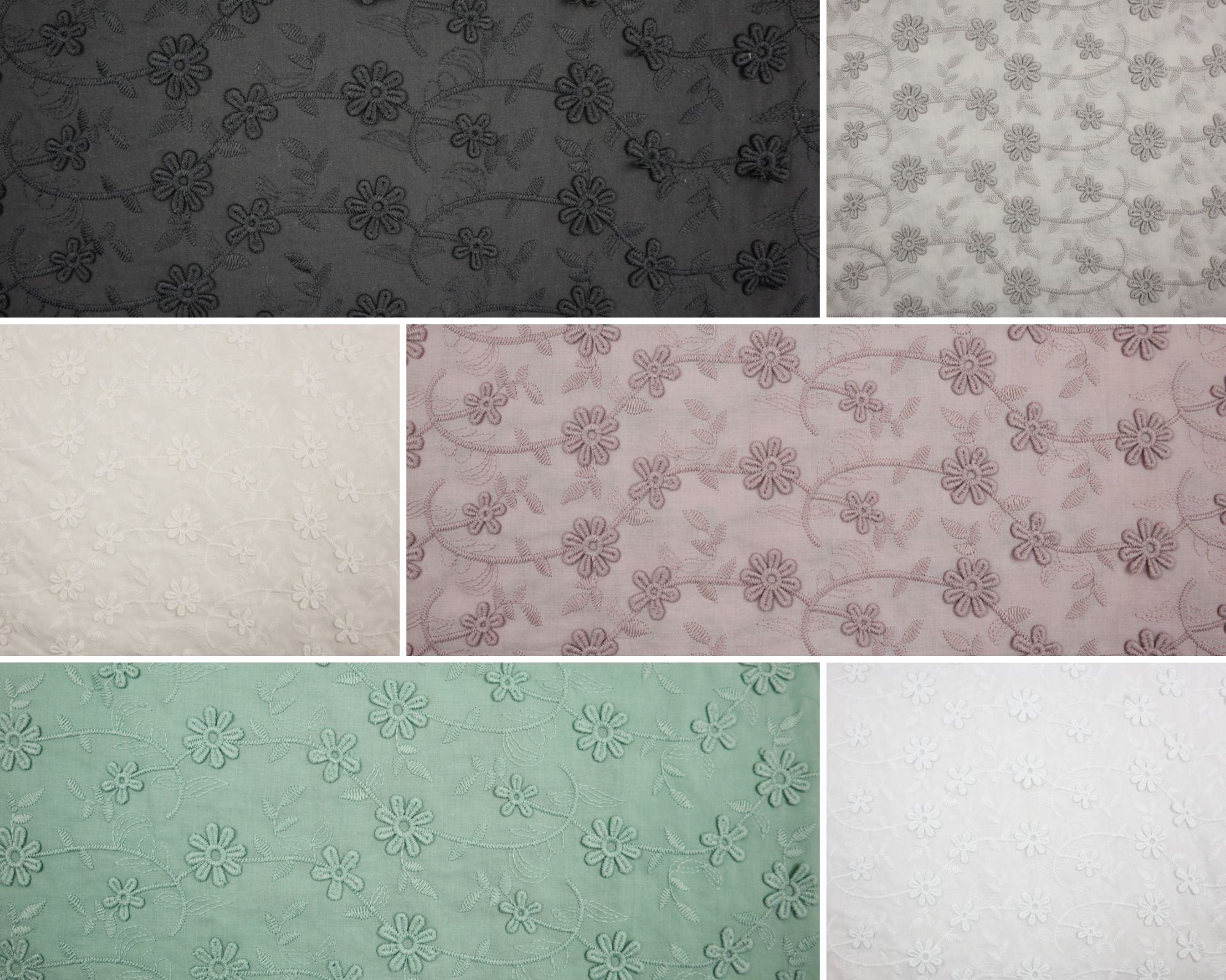 Wunderschöner, hochwertig bestickter Baumwollstoff mit romantischem Blumenmuster.