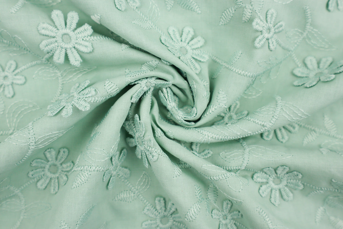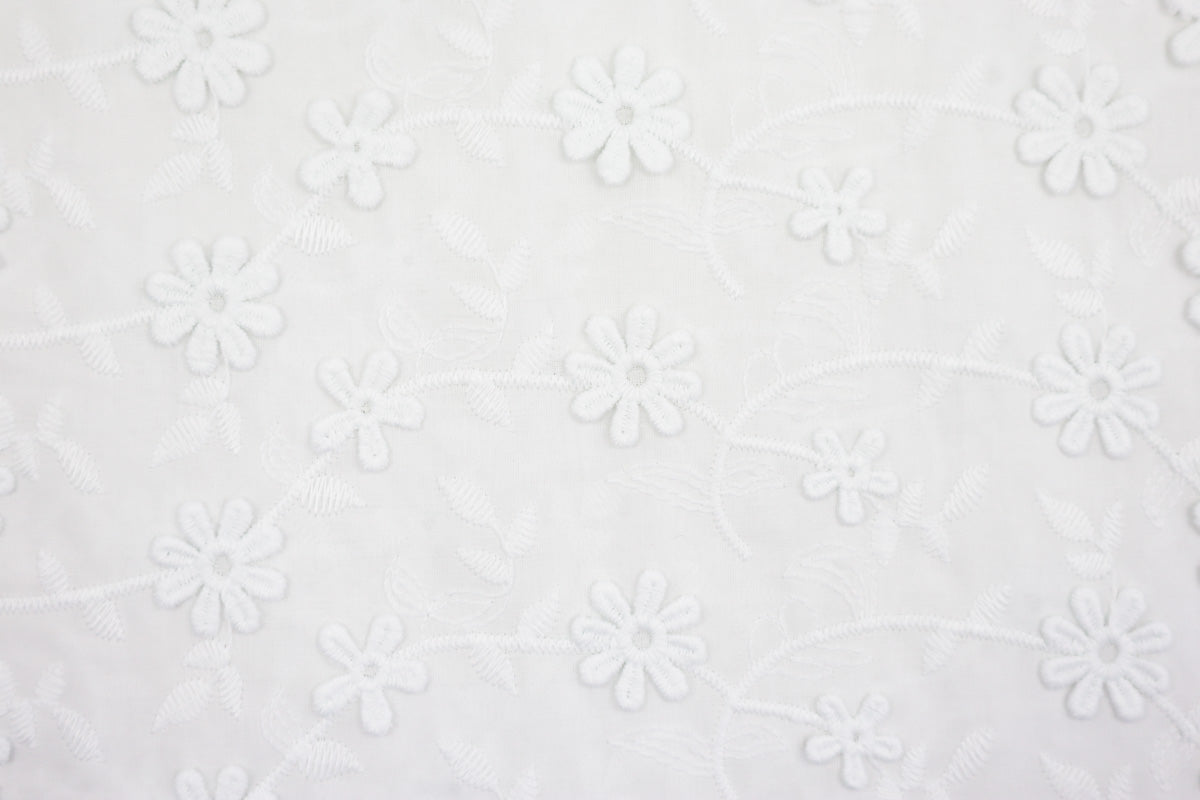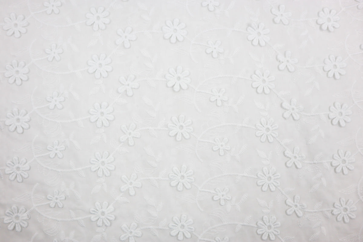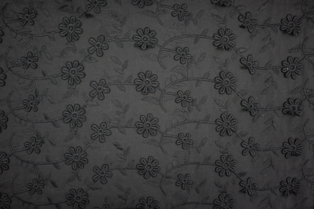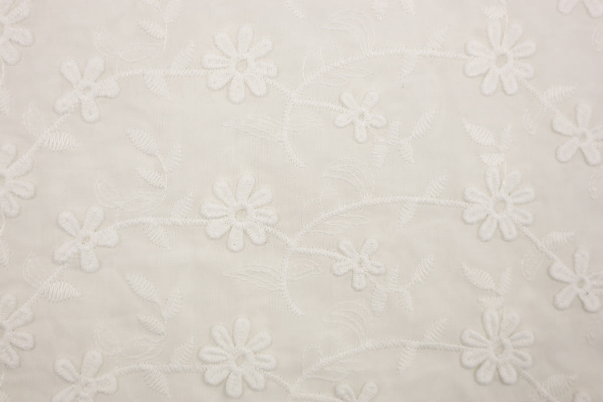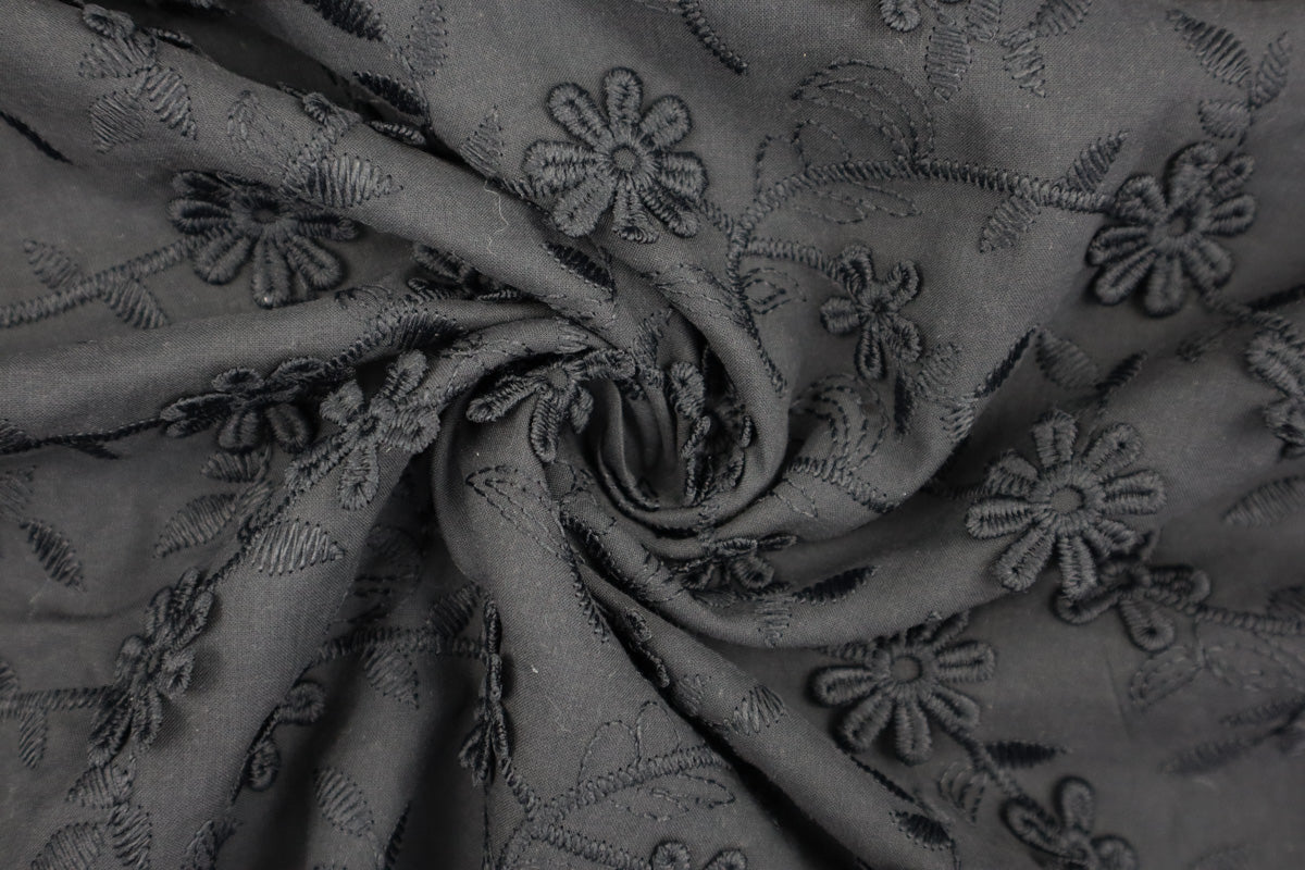 Wunderschöner, hochwertig bestickter Baumwollstoff mit romantischem Blumenmuster.