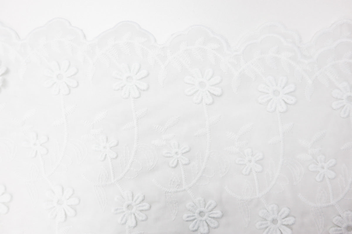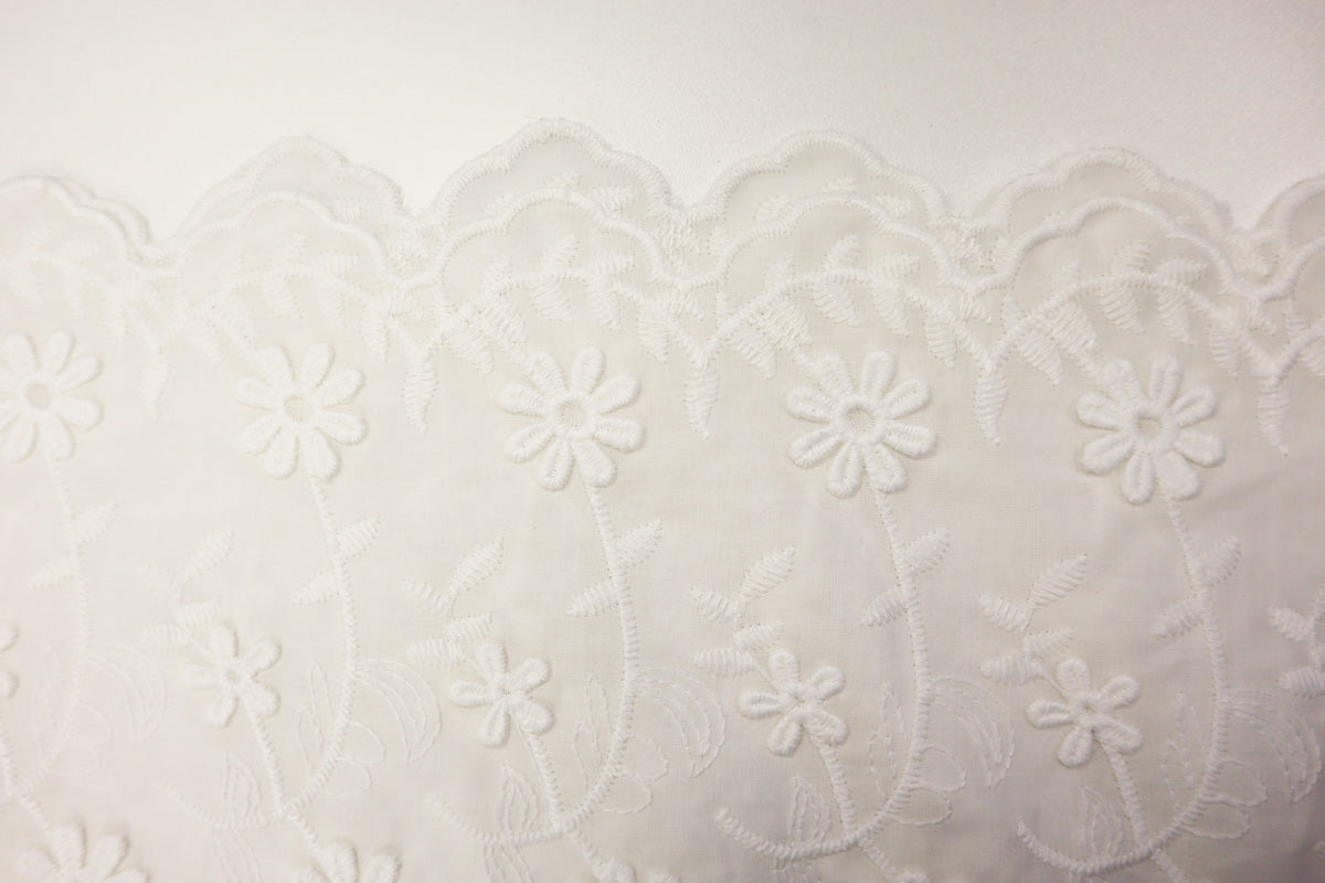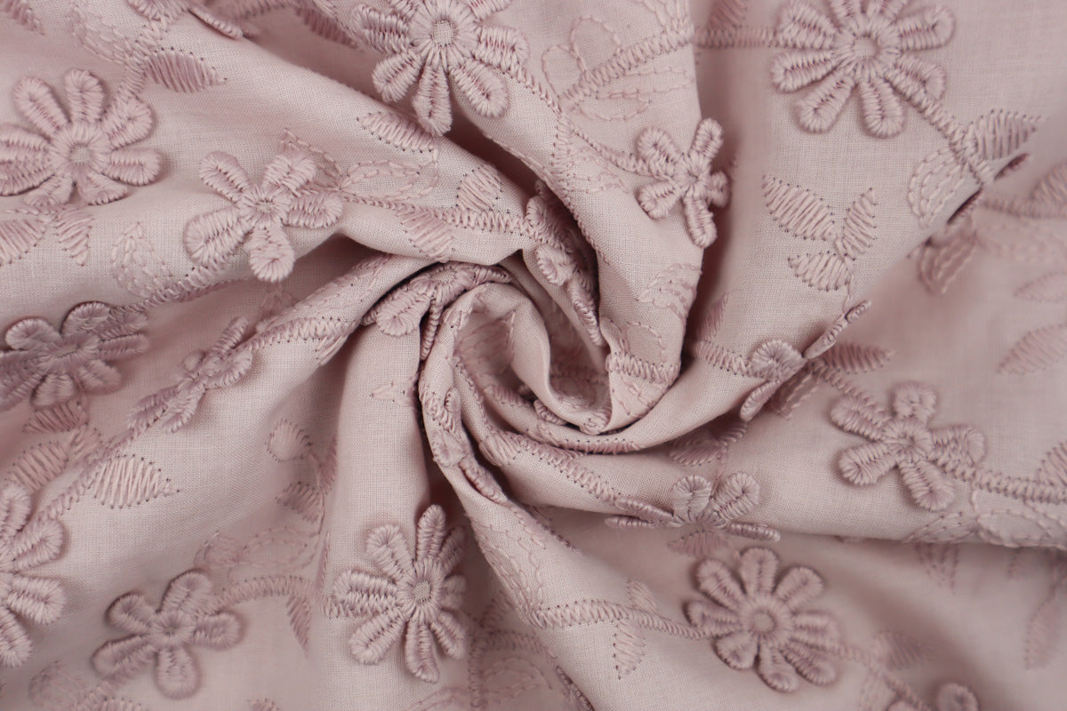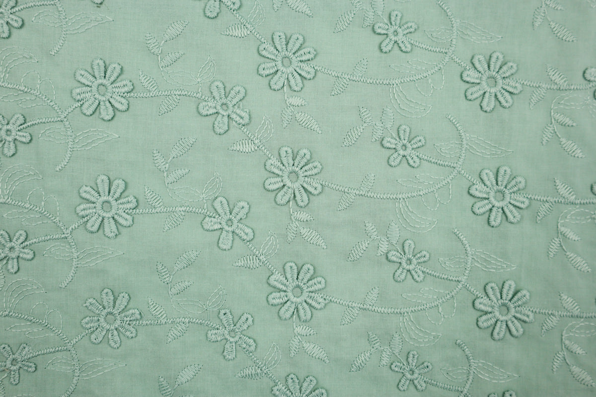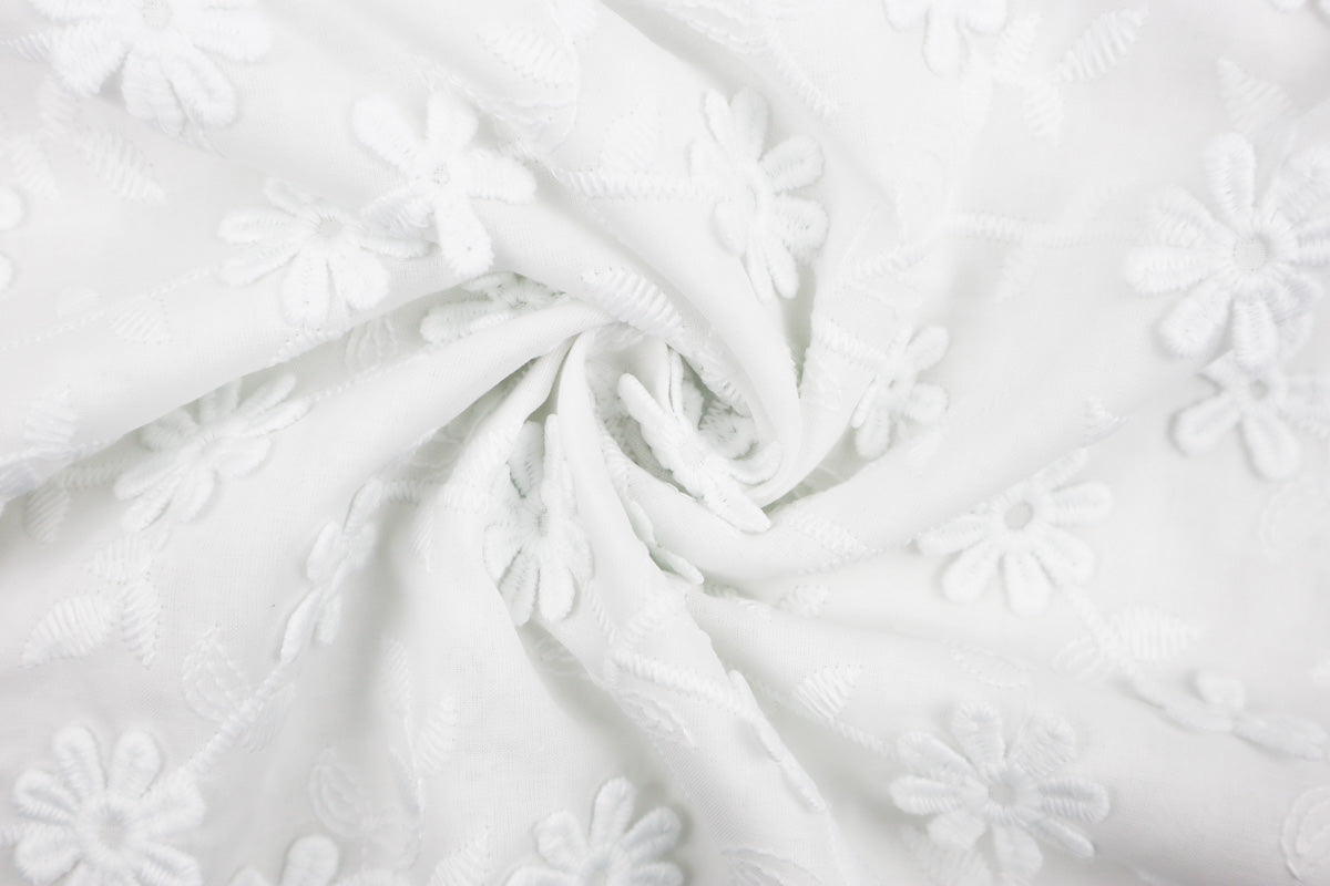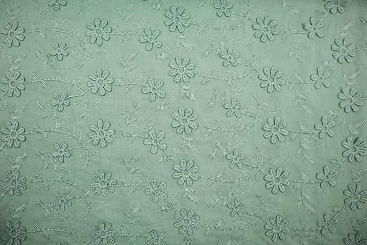 Wunderschöner, hochwertig bestickter Baumwollstoff mit romantischem Blumenmuster.