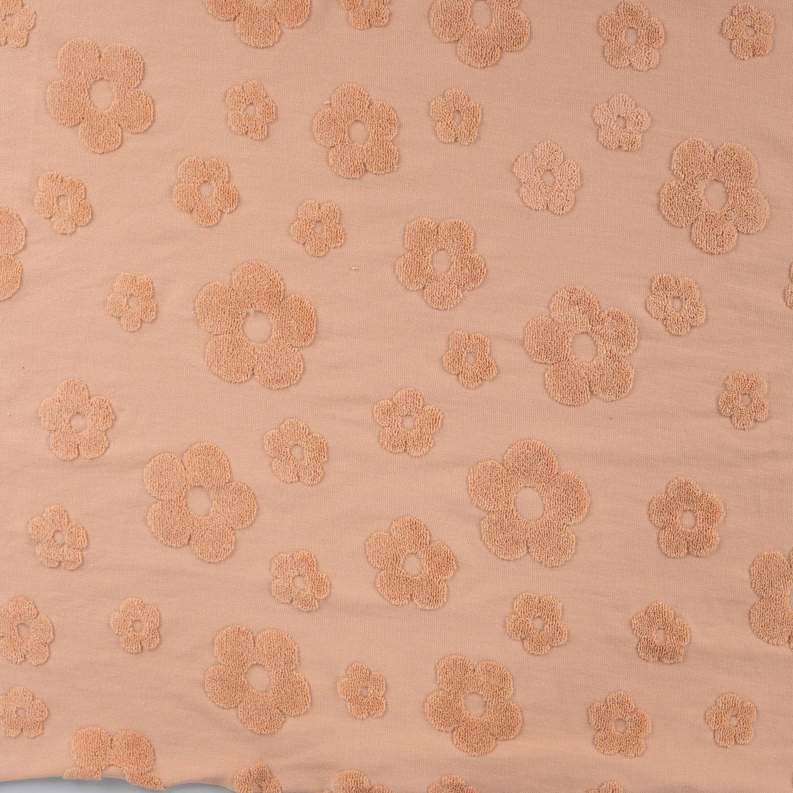 Toller Baumwollstoff mit aufgesetzten Frottee Blumen in Lachsrosa.
