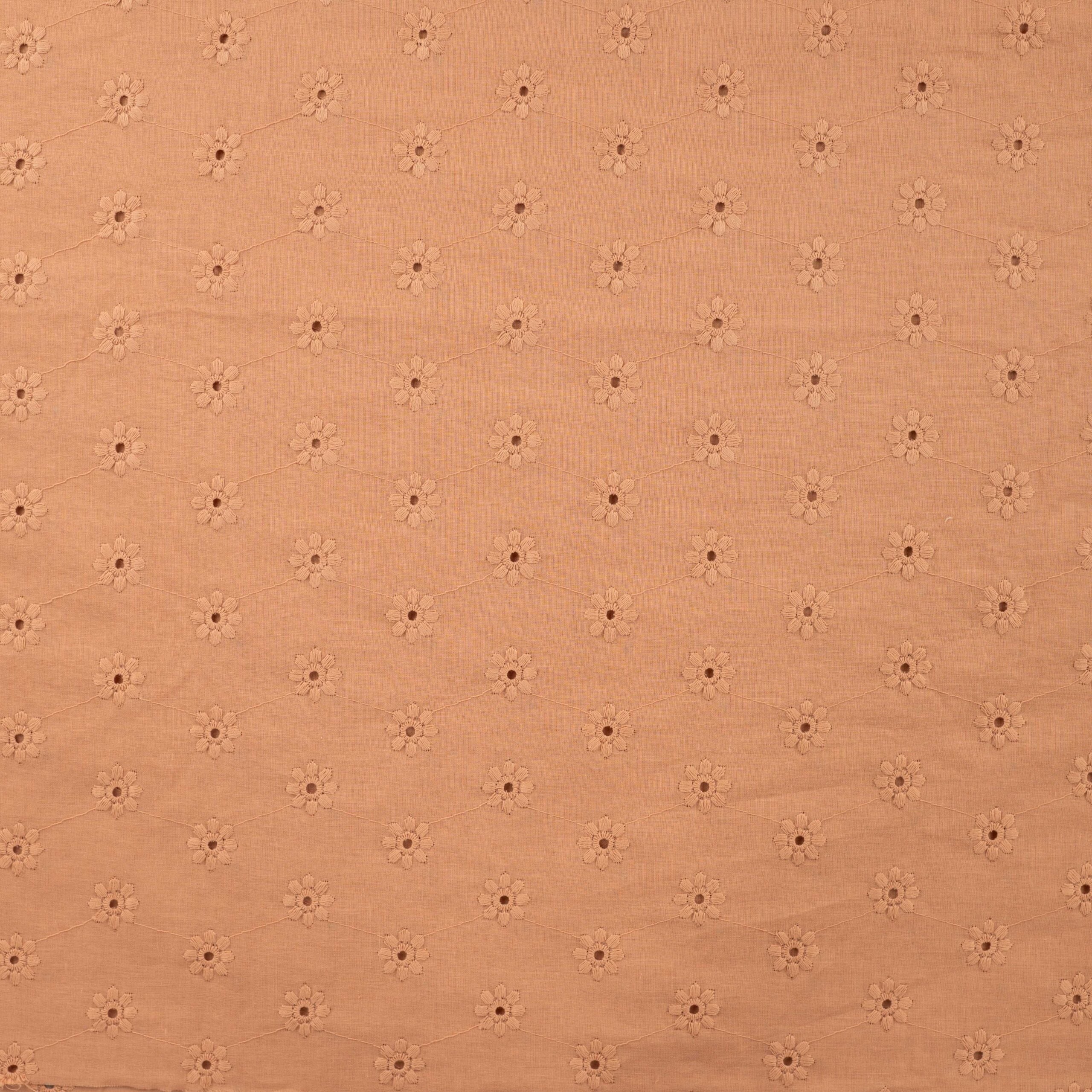 Schöner Baumwollstoff mit blumiger Lochstickerei in Lachsfarben.