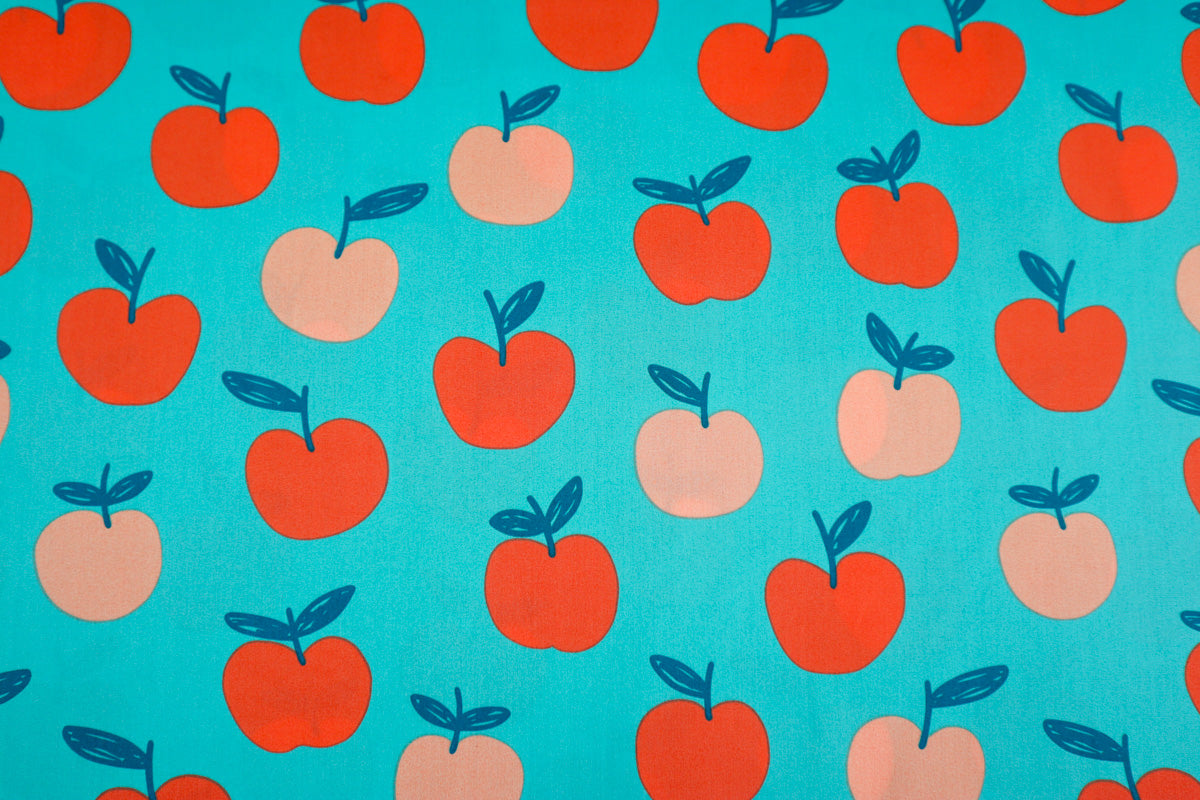 Schönes Muster mit Äpfeln auf mintfarbenem Hintergrund.