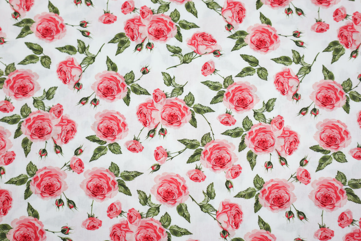 Wunderschönes Rosenmuster auf weißem Hintergrund.