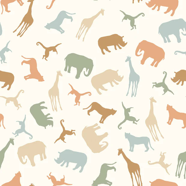 Tolles Muster mit vielen verschiedenen Tieren auf wollweißem Hintergrund.