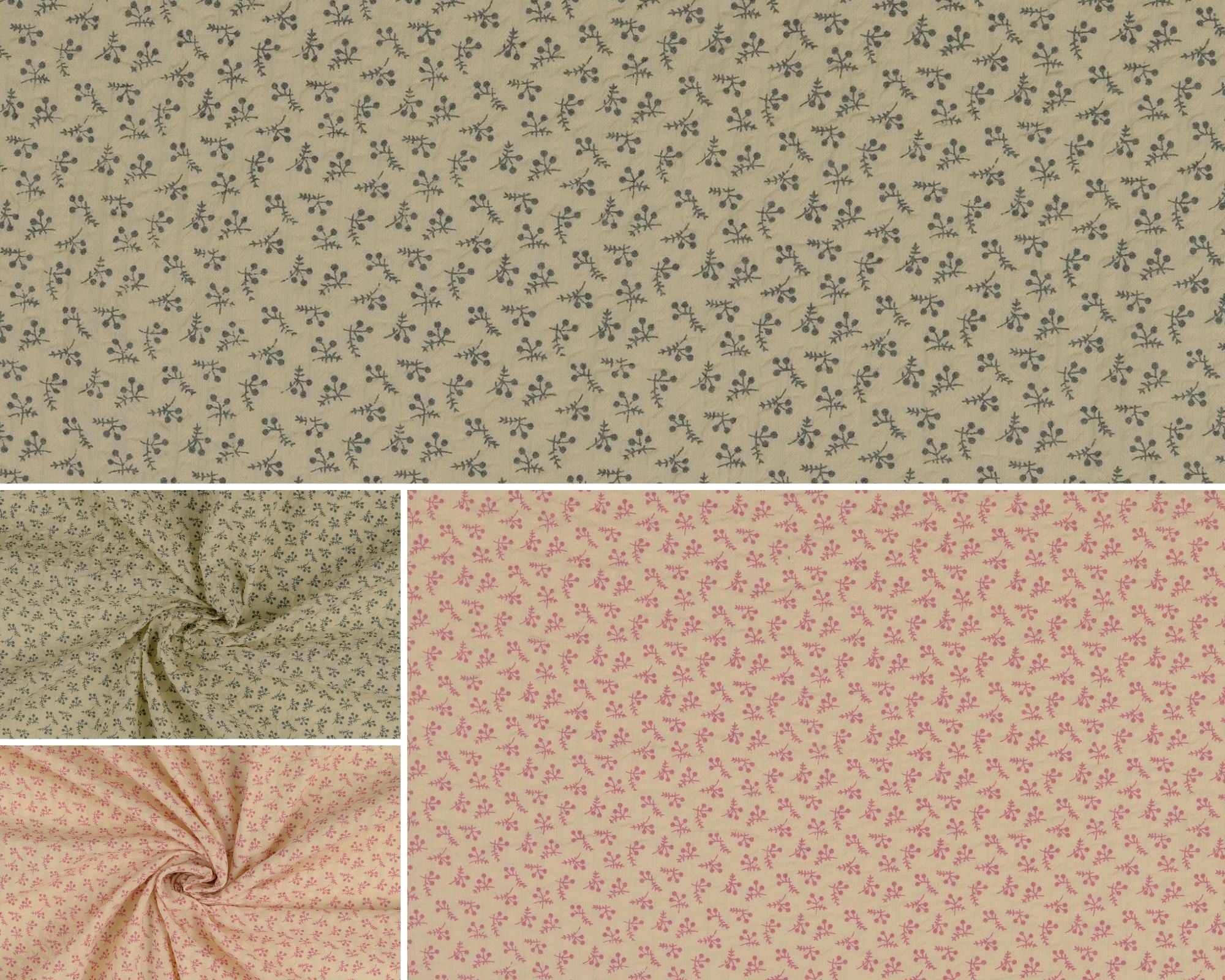 Wunderschöner Baumwollstoff in Vintage Seersucker-Qualität mit kleinen Zweigen.