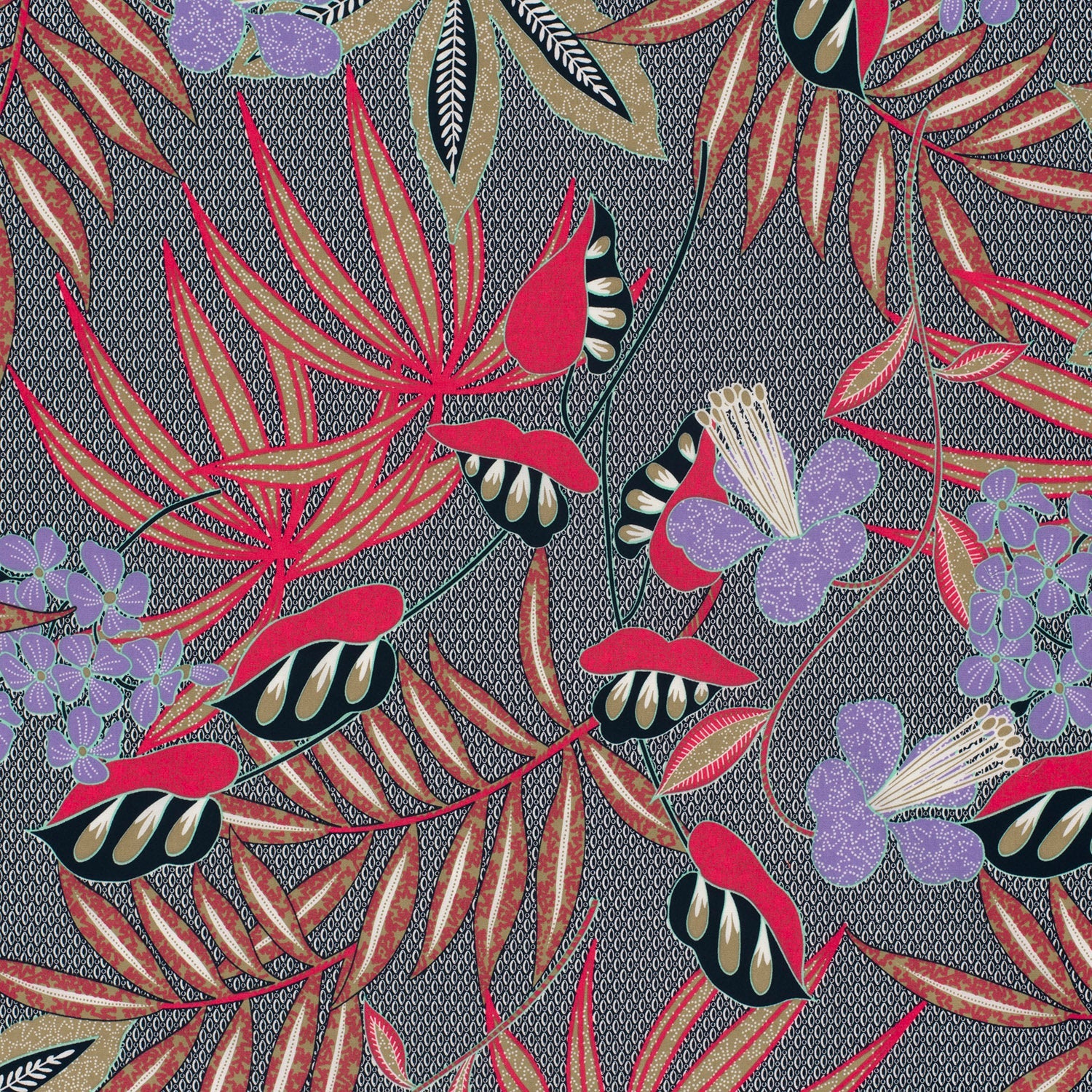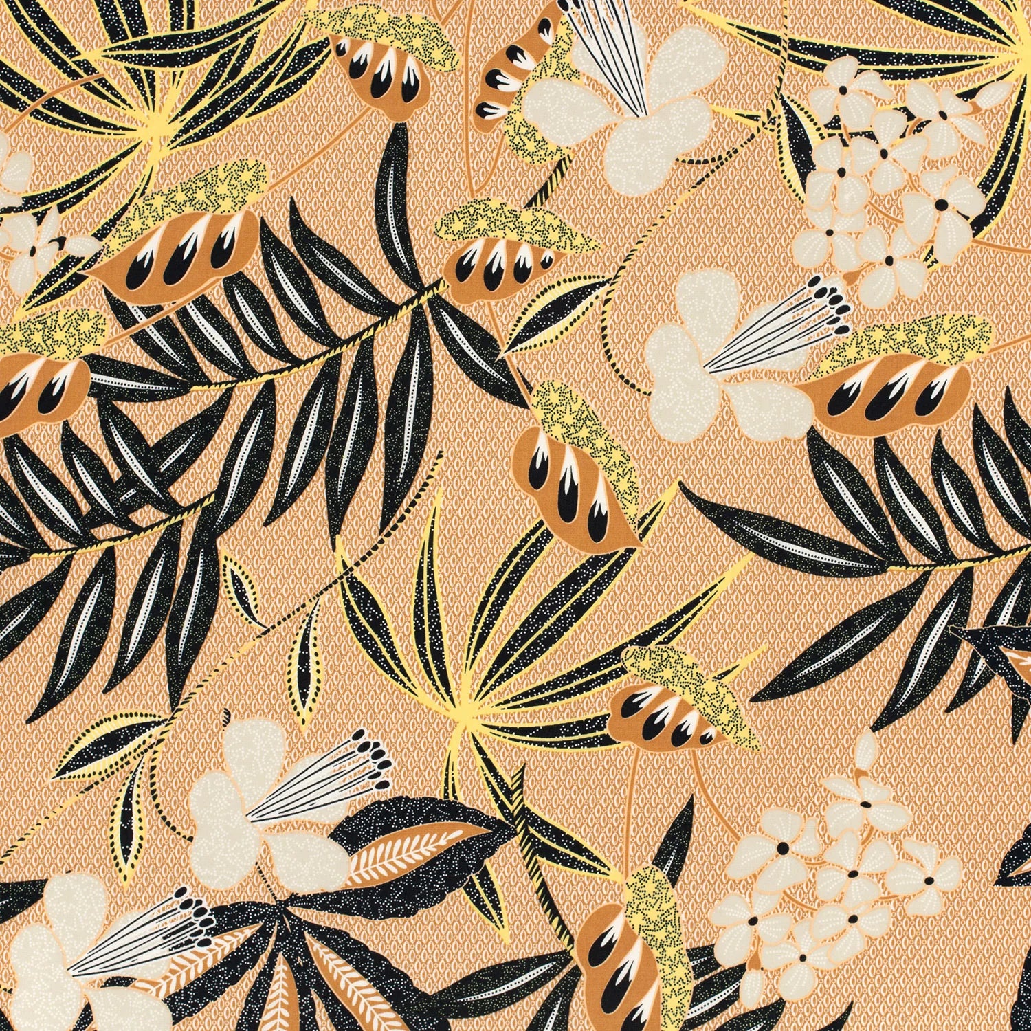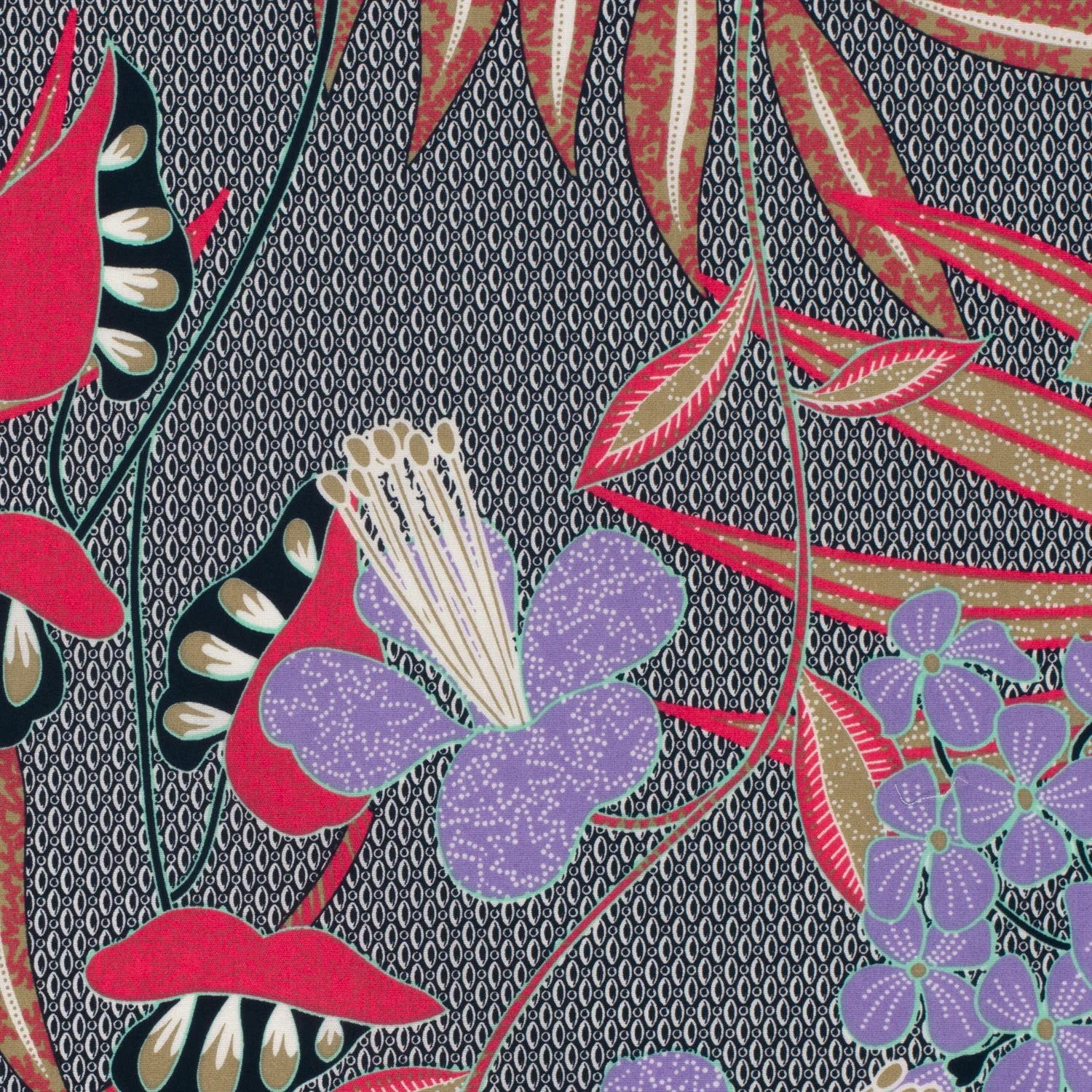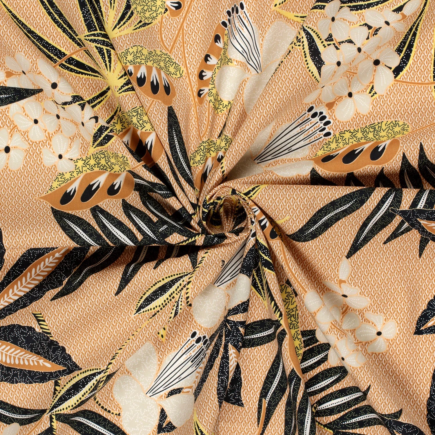 Toller Stretch-Satin mit exotisch angehauchtem Blumen- und Blätterdesign.
