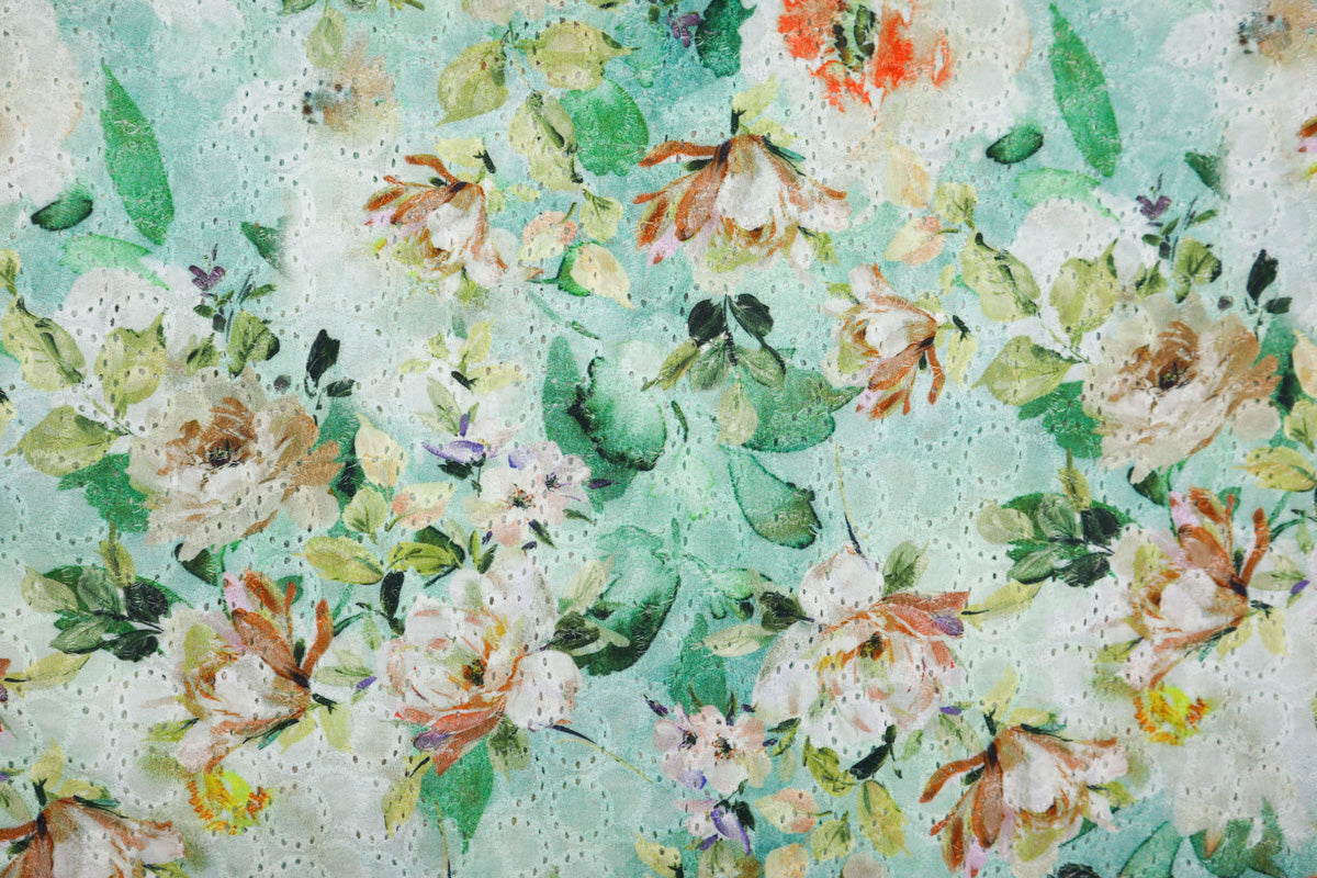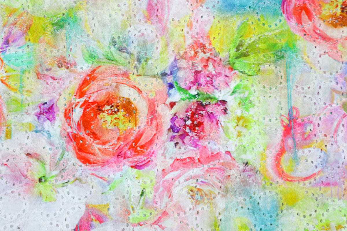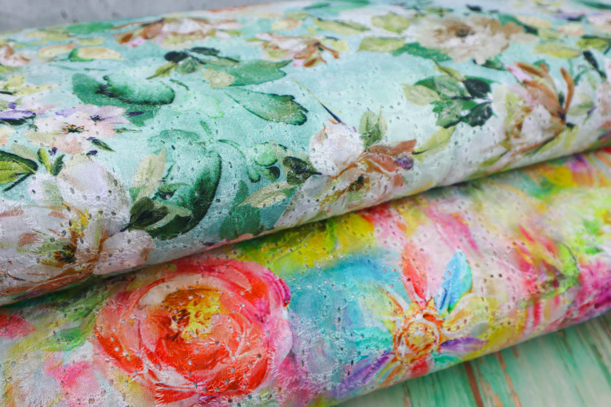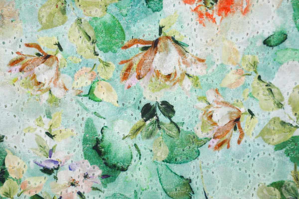 Wunderschöner, hochwertig bestickter Voile mit romantischem Blumenmuster.