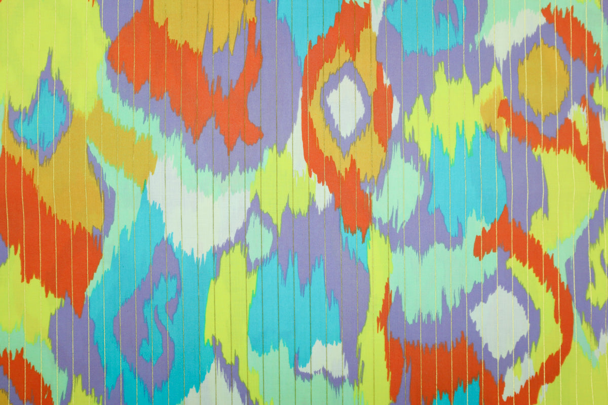 Toller leichter Stoff in bunten Farben mit feinen, goldenen Lurexfäden durchzogen.