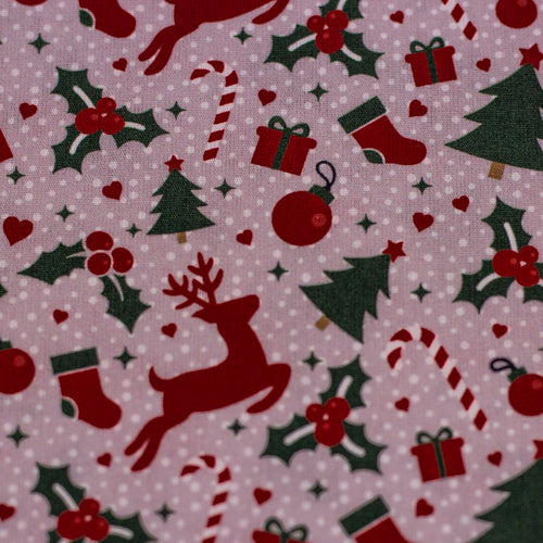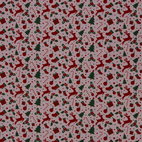 Tolles Muster mit kleinen Rentieren und weihnachtlichen Accessoires.