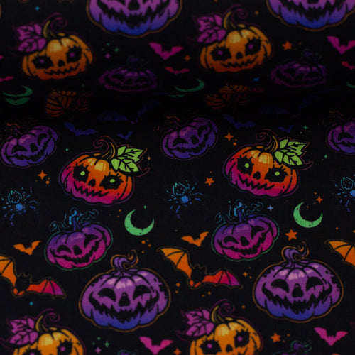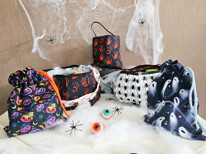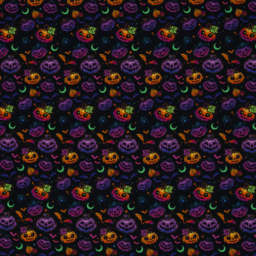 Außerdem gibt es ein schönes buntes Design mit Kürbissen und Fledermäusen in kräftigem Lila und Orange. Außerdem haben wir noch gruselige Gespensterm, die durch den dunkelblauem Nachthimmel schweben!