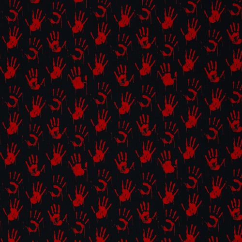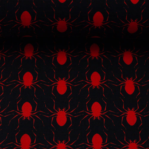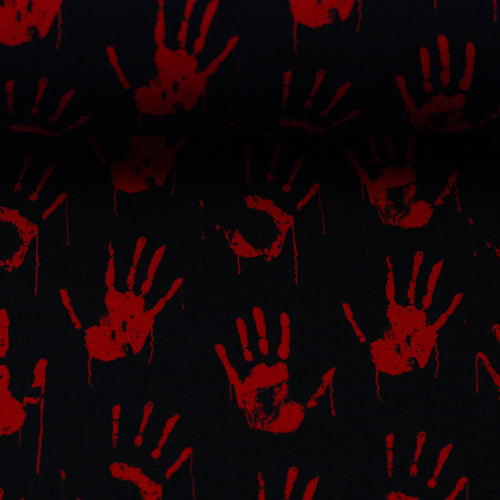 Auf Webware Booo! gibt es die roten Handabdrücke auf schwarzem und weißem Grund sowie rote Spinnen auf Schwarz und schwarze Spinnen auf Weiß. Diese lassen sich so gut miteinander kombinieren – für coole Wendebeutel, Kissen und mehr!