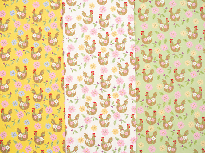 Es gibt 3 Farbwelten, die so gut miteinander kombinierbar sind - traumhaftsonniges Gelb, zartes Hellgrün und die Stoffe in Weiß / Rosa / Flieder!