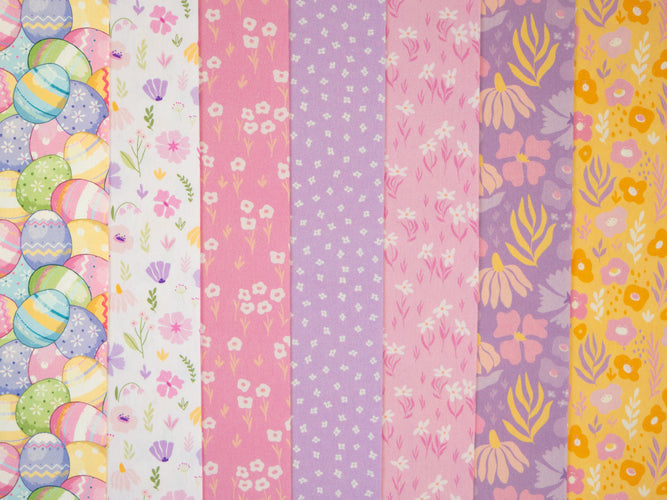 Eine tolle Baumwollserie, die bei weitem nicht nur an Ostern einsetzbar ist – neben den bunten Ostereiern gibt es viele weitere Designs, die sich sehr gut für frühlingshafte Tischdeko, Küchenutensilien, Geschenke, Taschen, Kleidung und mehr eignen. Die frischen, floralen Designs gibt es mit verschiedenen Blumendesigns in Weiß mit Rosa und Lila, verschiedenen Rosa- und Fliedertönen und einem traumhaften Gelb, ebenfalls mit Rosa und Flieder. Darunter kleine Streublümchen und etwas größere Blumen und Zweige.
