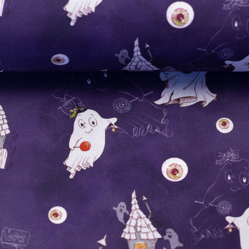 Halloween naht und wir haben die passenden Stoffe! Dabei sind die süßen Designs auf Webware Henry kindgerecht und nicht zuuu gruselig! Wir haben ein Geisterschloss und liebe Gespenster auf lila Grund, einen weißen Stoff mit Geistern, der kleinen Hexe, der Mumie, einem gruseligen Mädchen, der Katze, dem Raben und einem Halloweenkürbis. Außerdem gibt es ein cooles Design mit Halloween-Zwergen und Kürbissen auf lila Untergrund – so witzig die mit Kürbissen und Fledermäusen gemusterten Mützen der Zwerge!