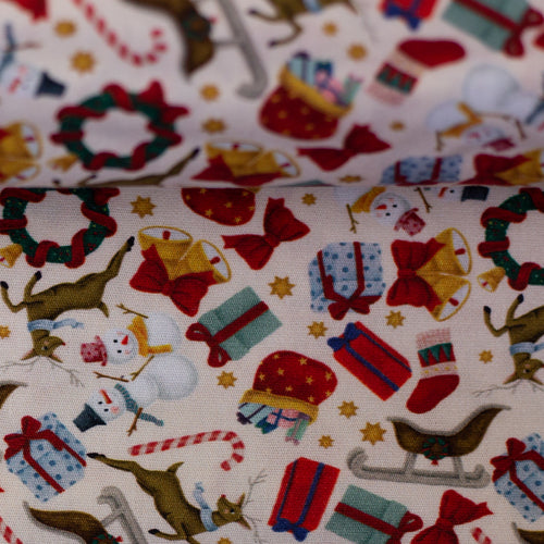 Ideal für alle weihnachtlichen Nähideen, Patchworkdecken, Tischläufer, Christbaumdecken, Deko, Geschenkesäckchen, Tischdeko, Nikolausstrümpfe und vieles mehr!