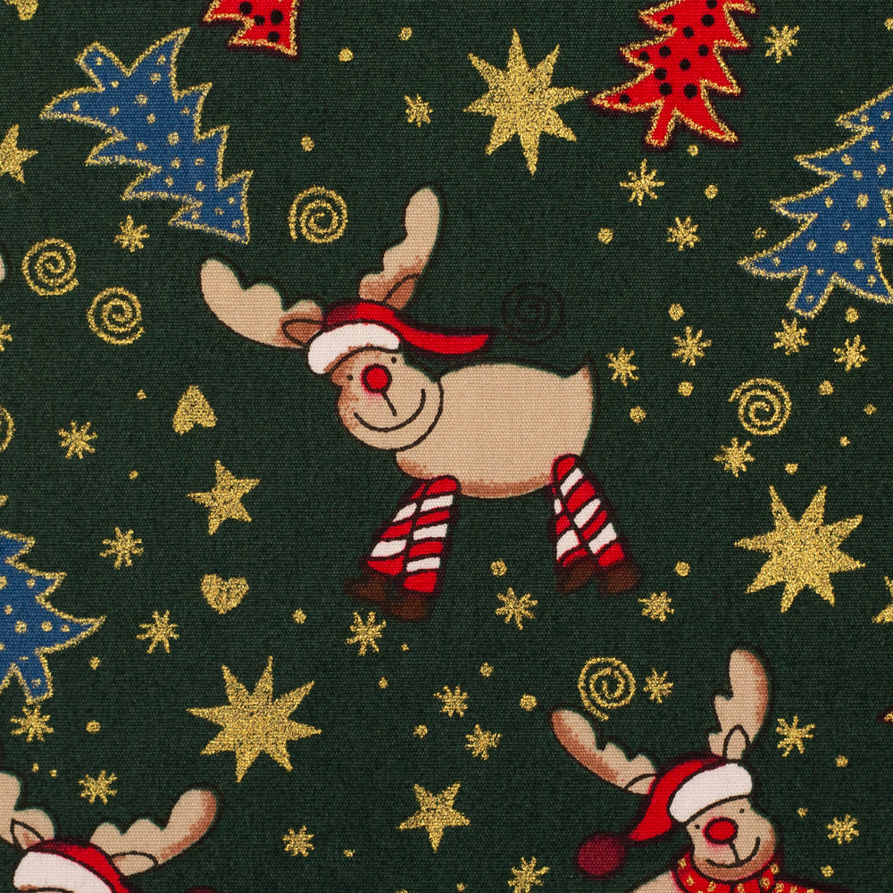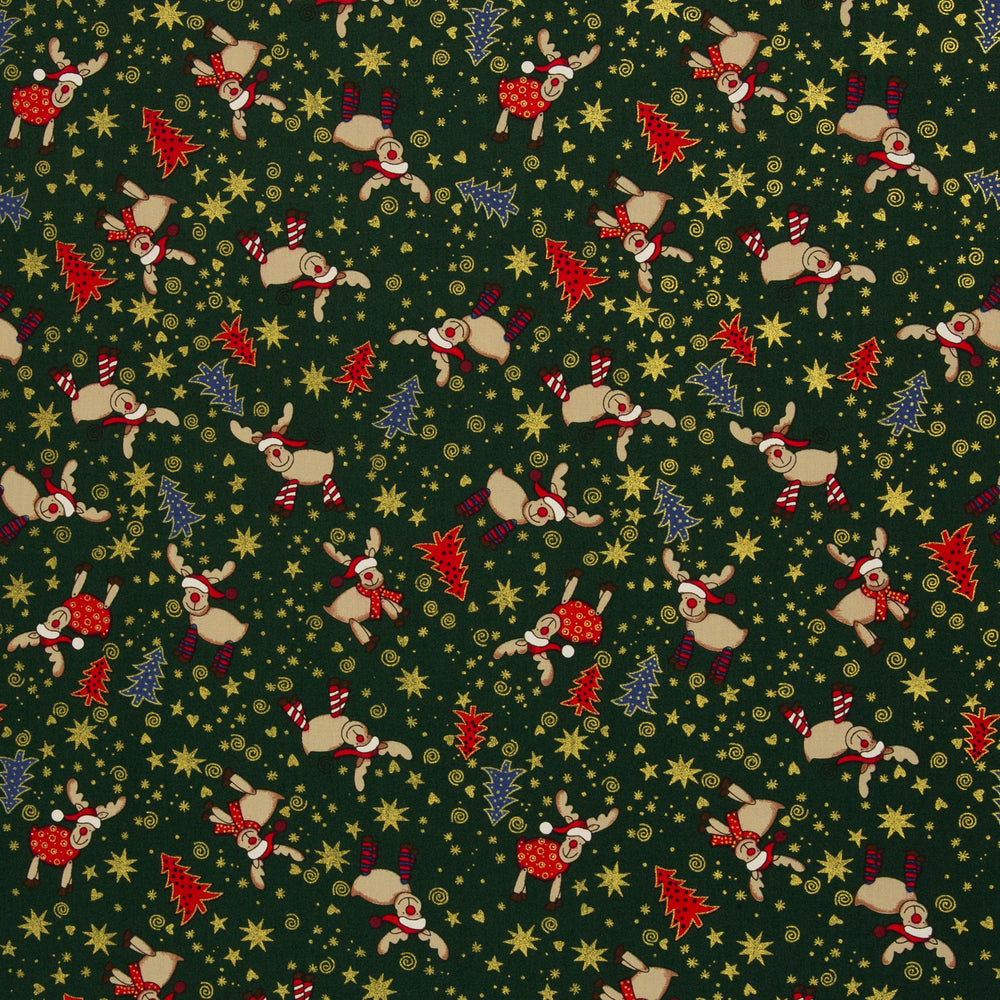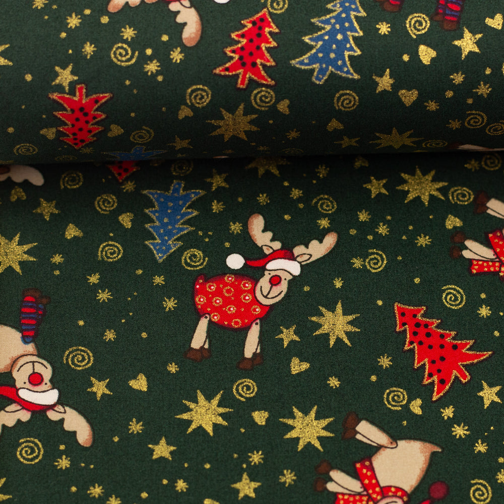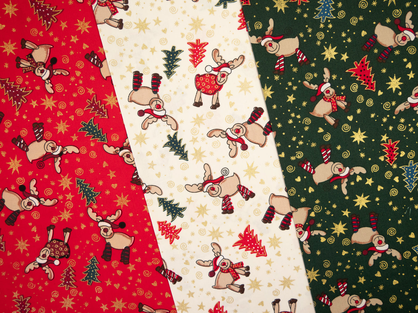 Eine ganz besonders festliche Webware mit goldenem Schimmer: Mit Rudolf zieht weihnachtliche Stimmung ins Nähzimmer ein! Die Baumwoll-Webware begeistert mit drei stimmungsvollen Grundfarben, strahlendem Rot, klassischem Dunkelgrün und edlem Naturweiß.