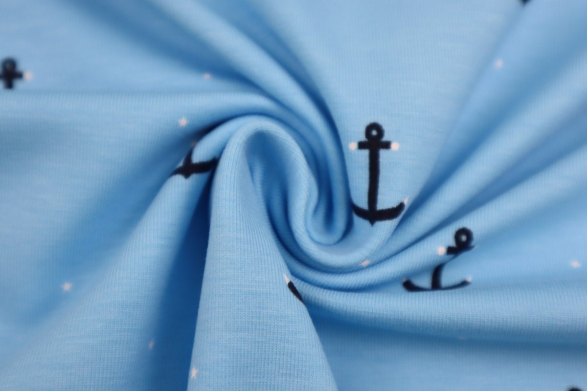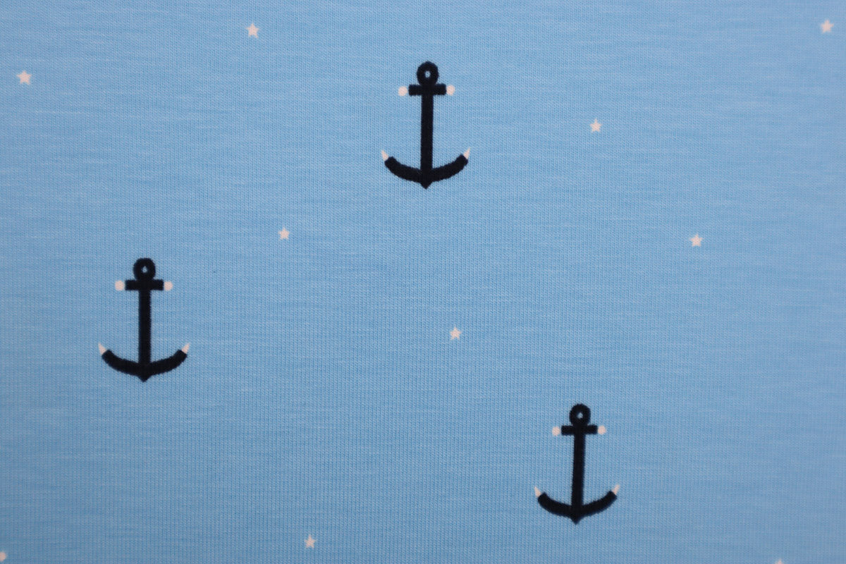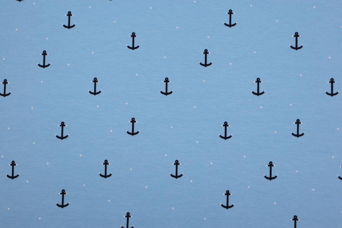 Maritimer Baumwolljersey mit Ankern und mini kleinen , weißen Sternchen.
