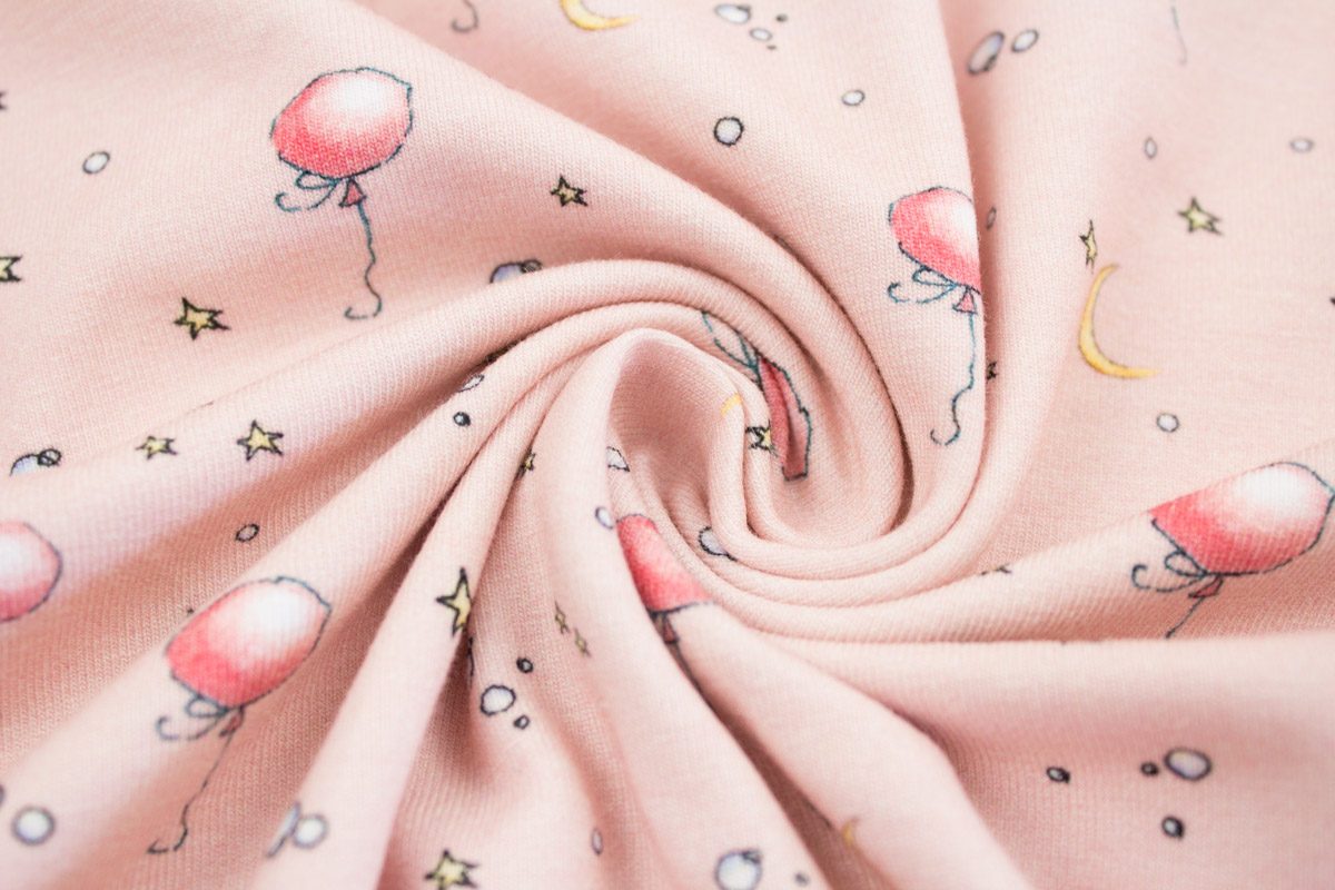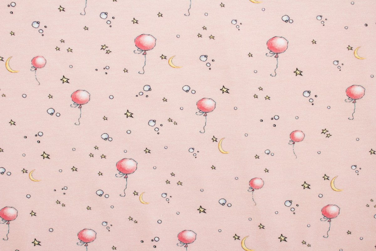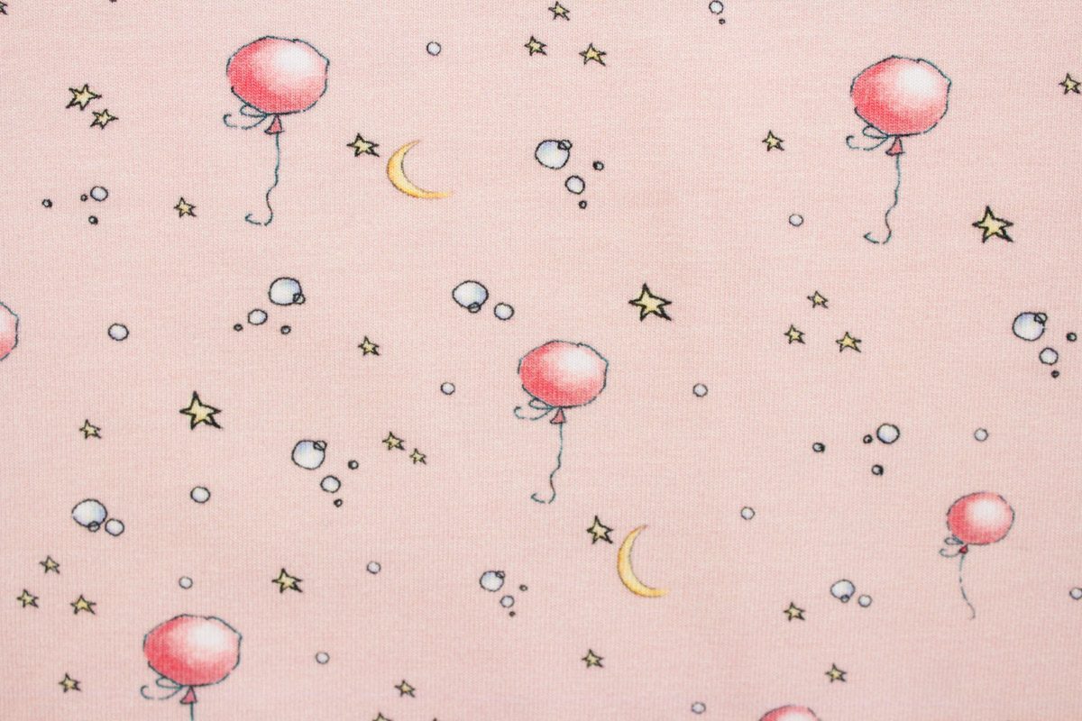 Toller Jersey mit Luftballons, Mond und Sternen auf rosa Hintergrund.