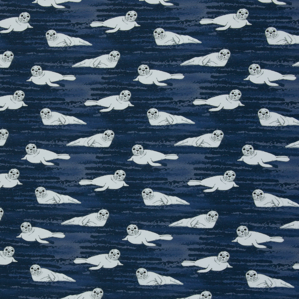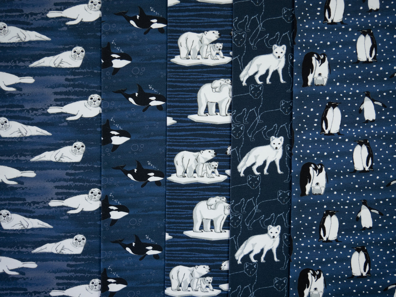 Mit ihrer Debüt-Kollektion Arctic Animals bringt sie die faszinierende Tierwelt der Arktis auf Baumwoll-Jersey. Ob Eisbärenfamilie, verspielte Orcas, Robben mit großen Kulleraugen, kuschelige Polarfüchse oder Pinguin-Eltern mit ihrem Nachwuchs – jedes der fünf Motive begeistert mit liebevollen Illustrationen und einer harmonischen Farbwelt in tiefem Blau. Zarte Streifen, Tupfen oder grafische Akzente im Hintergrund lassen die Designs besonders lebendig wirken.