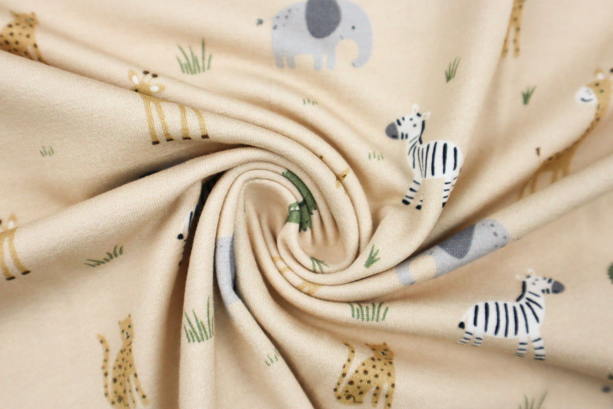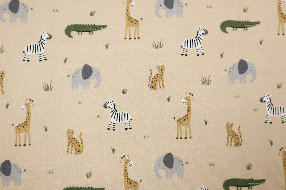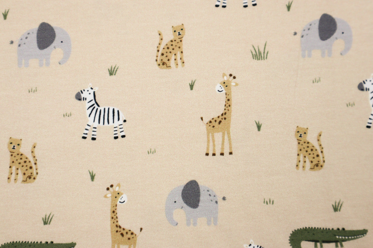 Tolles Muster mit Safaritieren wie Elefanten, Giraffen, Krokodilen, Zebras und Leoparden.