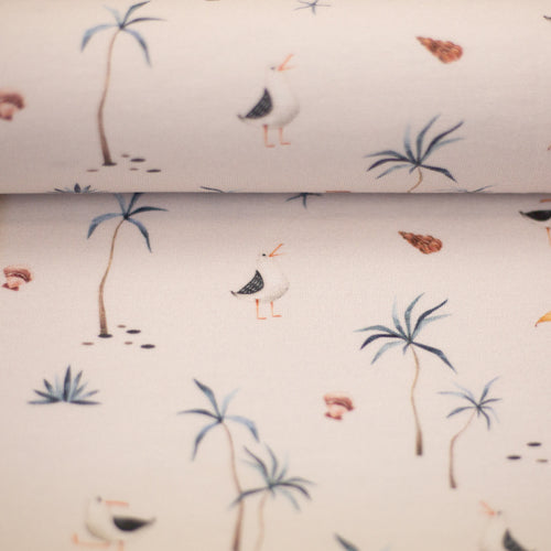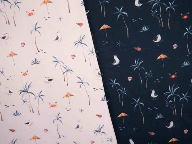 Die tollen Muster mit Möwen, Schildkröten, Palmen und Muscheln sowie dem dezenten Wellen-Design lassen sich super in gemütliche Bekleidung und Accessoires verzaubern.