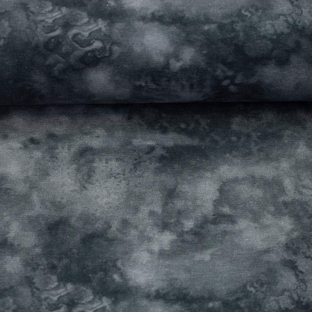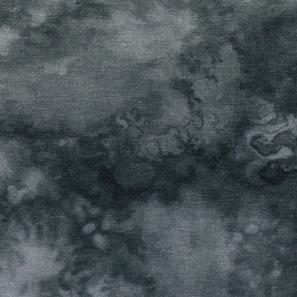 Der weiche Baumwolljersey begeistert mit einem lebendigen Batikmuster, das durch seine wolkigen Farbverläufe einen modernen und dynamischen Look erhält.