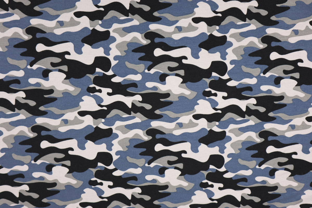 Baumwolljersey mit angesagtem Camouflage Muster in tollen Blautönen.