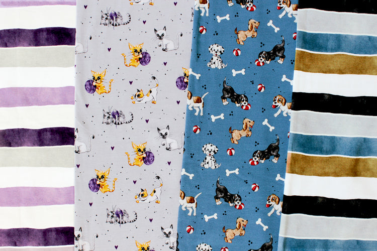 Bist du ein Katzen- oder Hundemensch? Wir können uns nicht entscheiden und finden diese süßen Designs ideal für alle Katzen- und Hundeliebhaber! Sabine Marschall hat mit Cats & Dogs eine süße Jerseykollektion mit verspielten Tiermotiven und den tollen passenden Streifen entworfen.