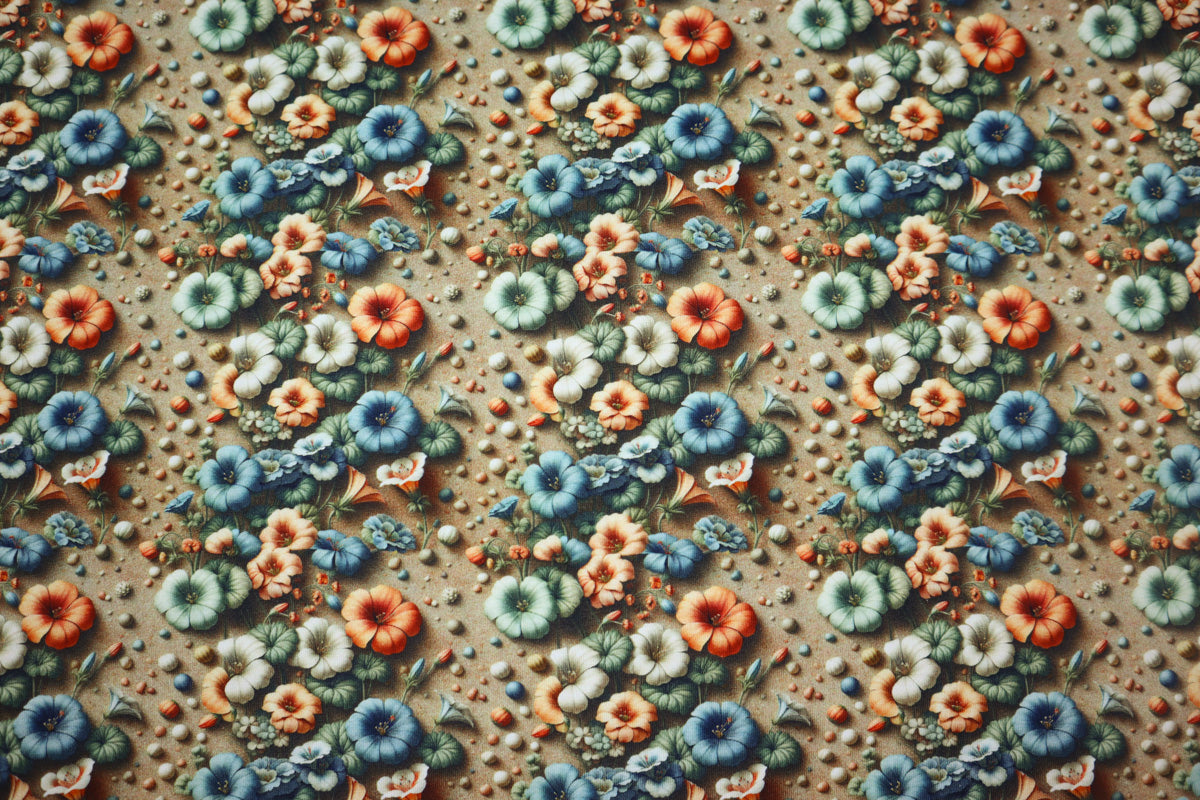 Schönes blumiges Muster in tollen Farben mit Blüten in 3D-Optik.