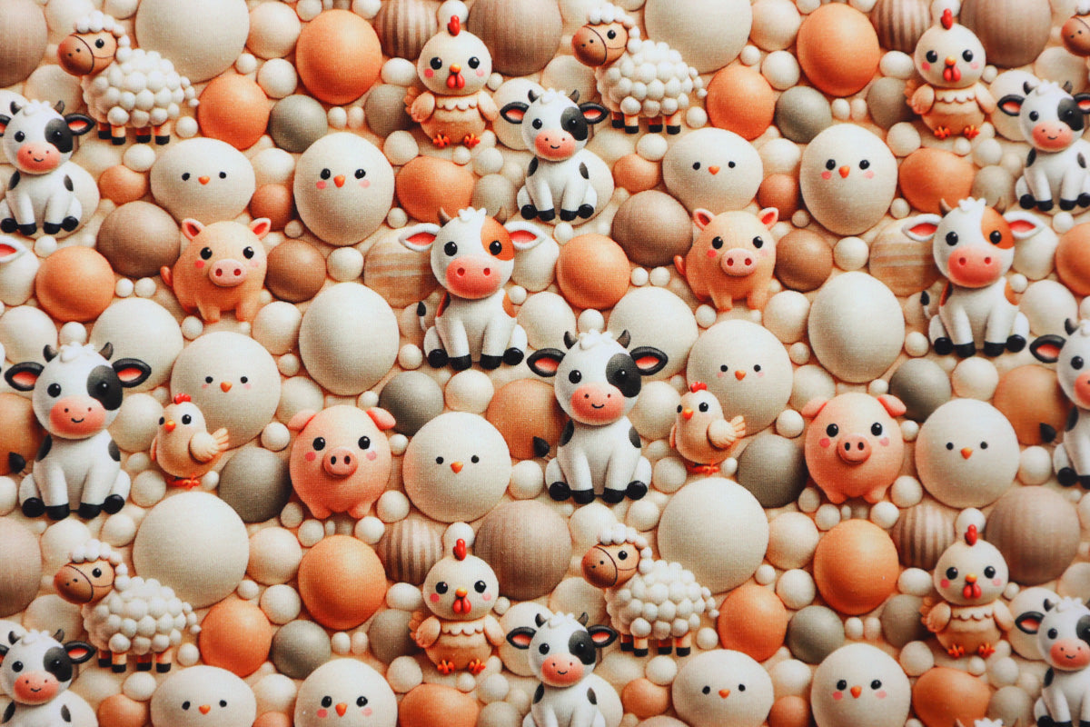 Niedliches Muster mit kleinen Bauernhof-Tieren in 3D Optik.