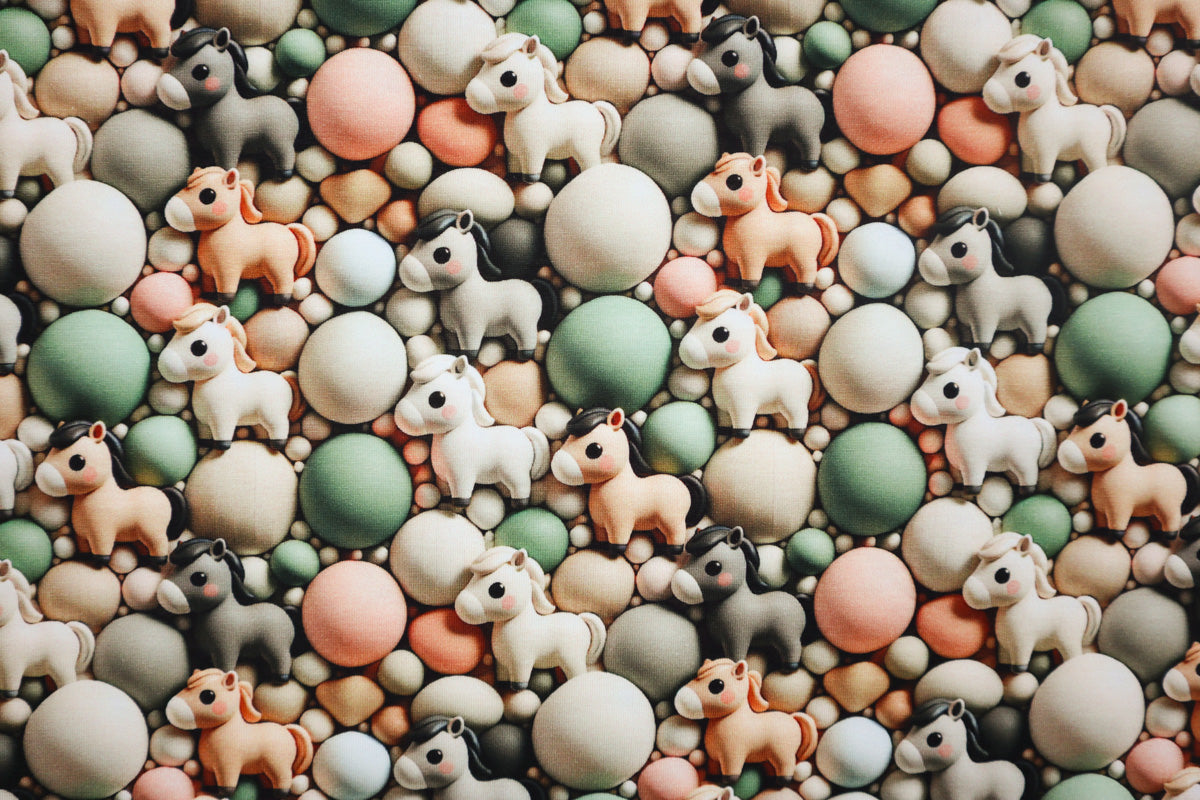 Niedliches Muster mit kleinen Bubbles und Ponys in zarten Farben und leichter 3D Optik.