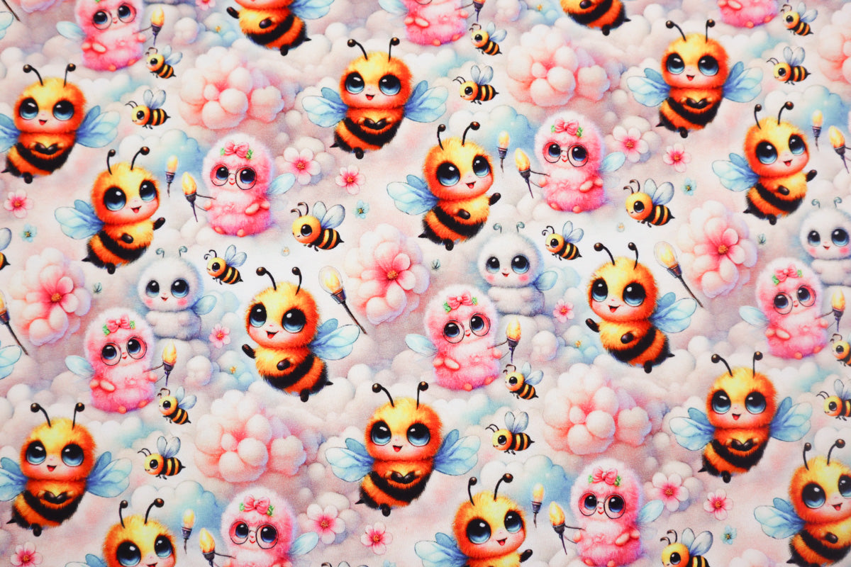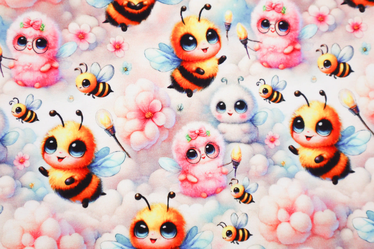 Niedliches Muster mit kleinen Bienen , Blümchen und Wolken.