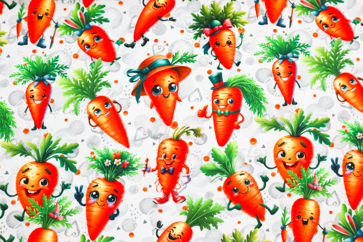 Super süßer Baumwolljersey für Kinder mit niedlichen Möhren.