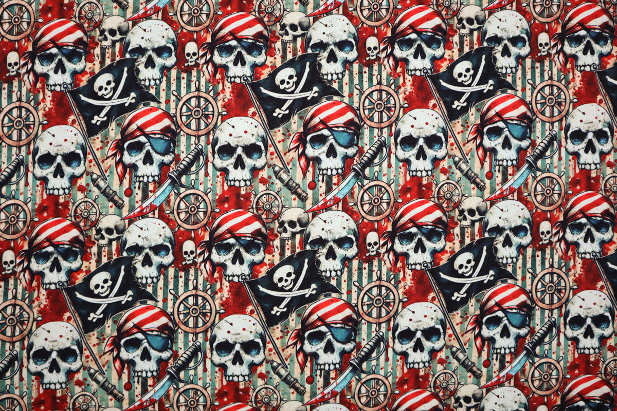 Richtig cooles Muster mit Piratenflaggen, Kanonen, Totenköpfen und vielem mehr.