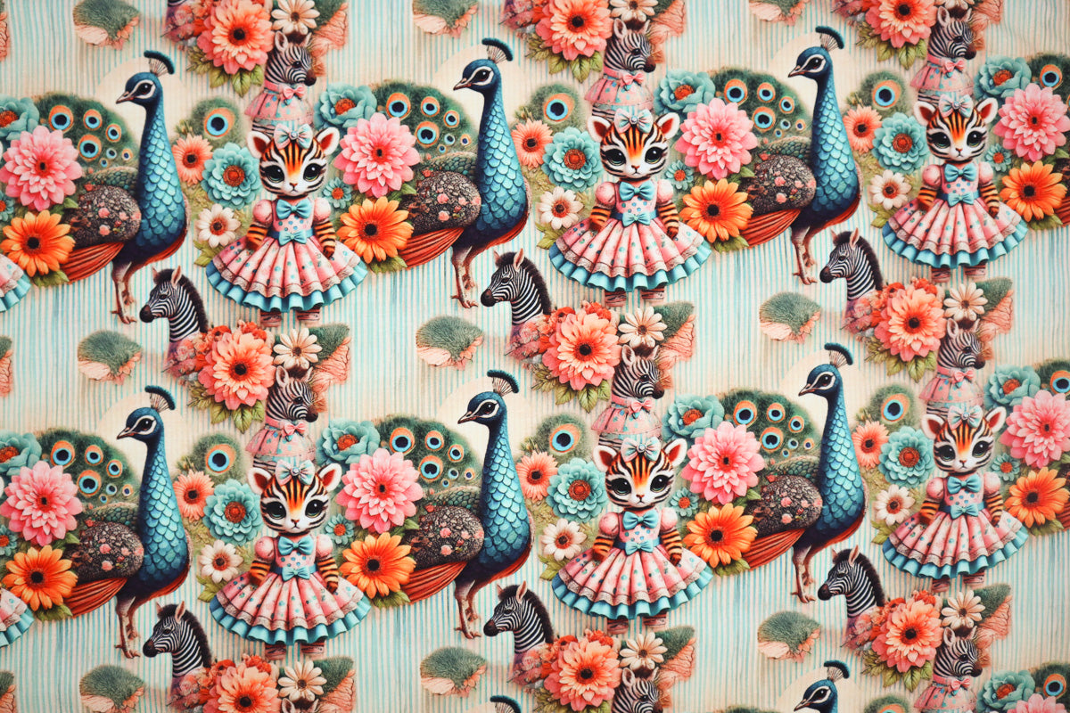 Bunte Blumen und Tiere in barocken Kleidern - ein tolles Design.