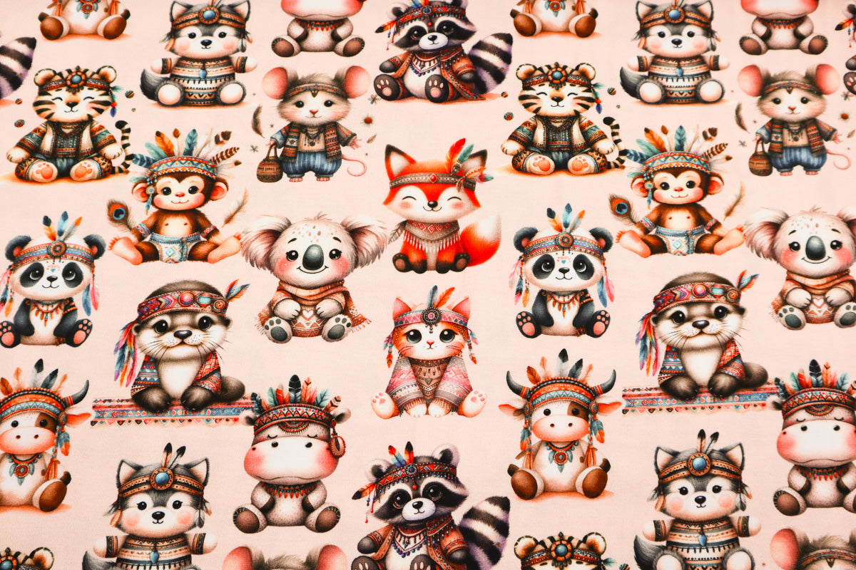 Super süßer Baumwolljersey für Kinder mit niedlichen Tieren als Indianer.