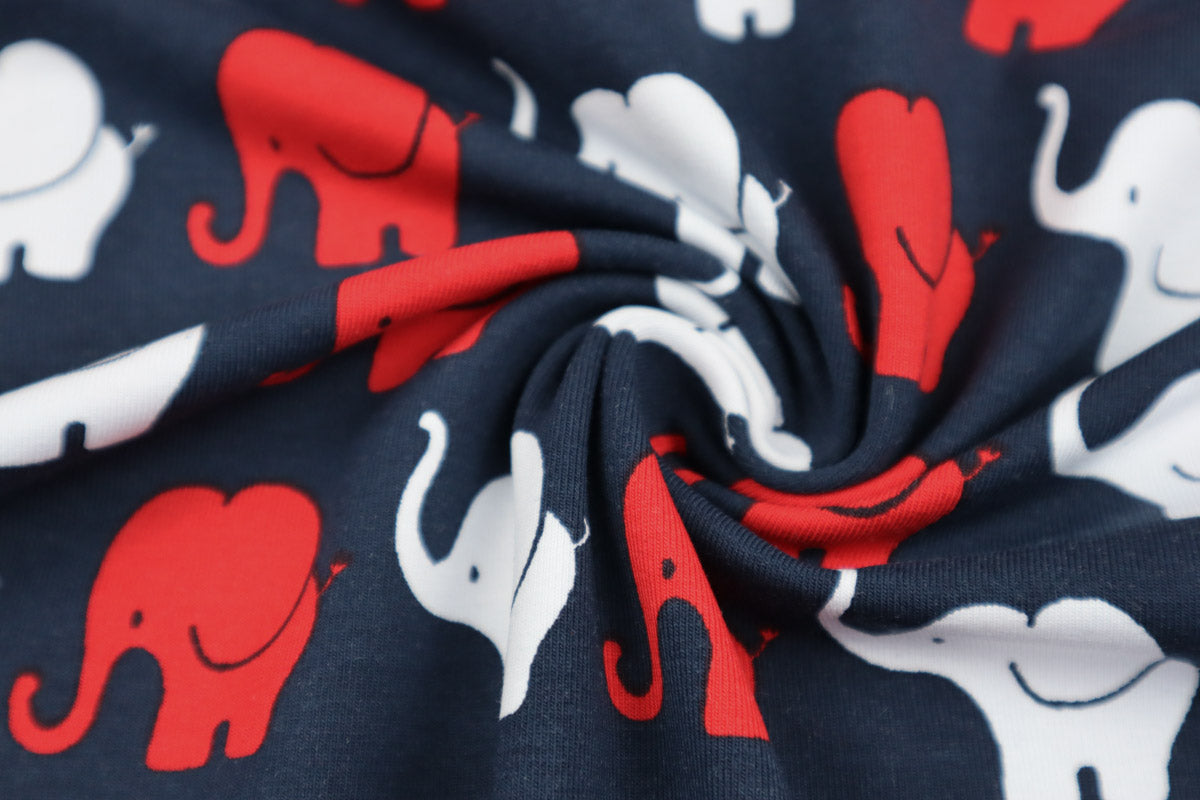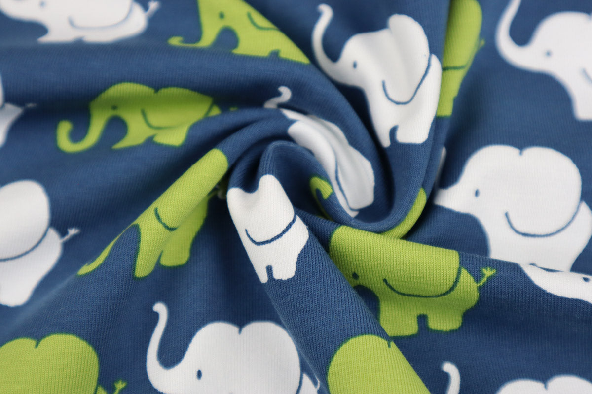 Super süßer Baumwolljersey für Kinder mit niedlichen Elefanten.
