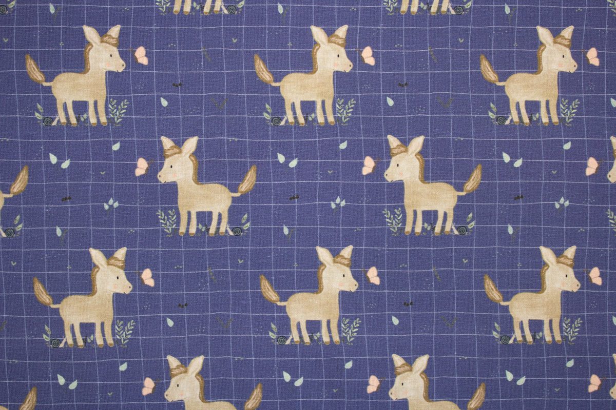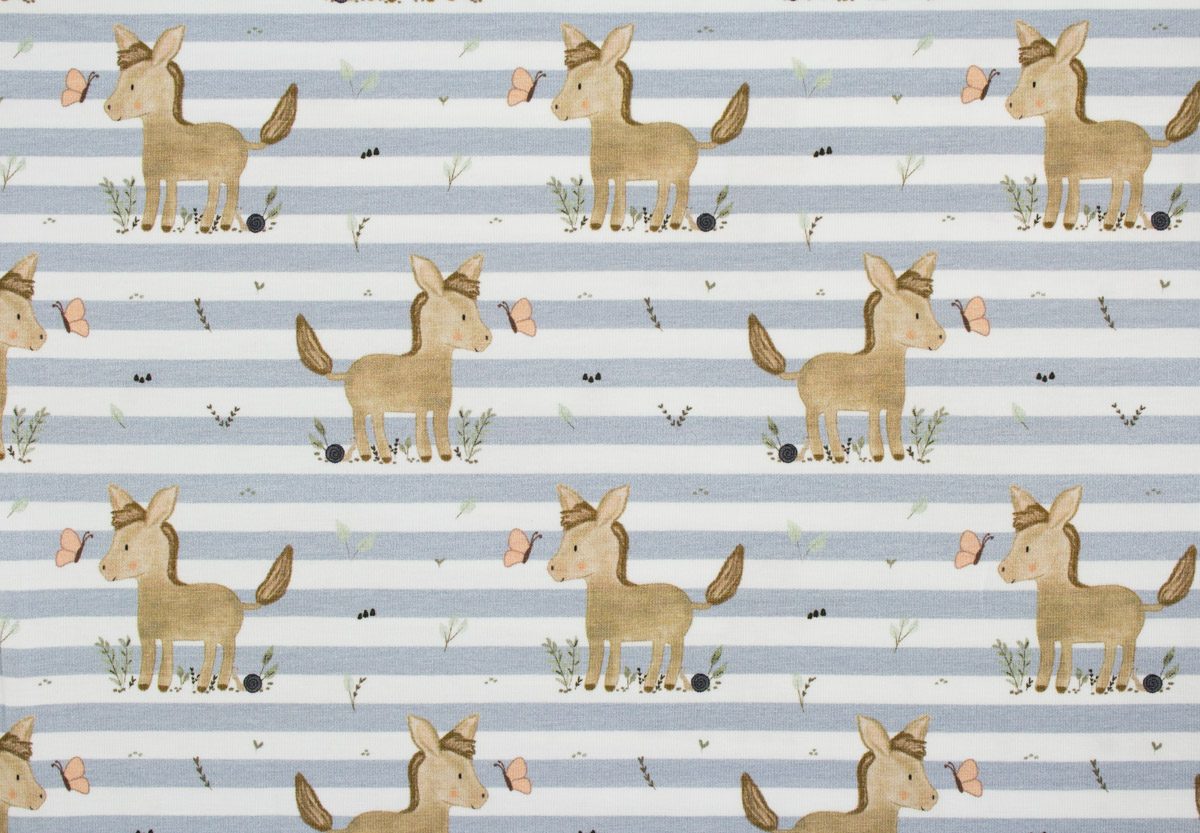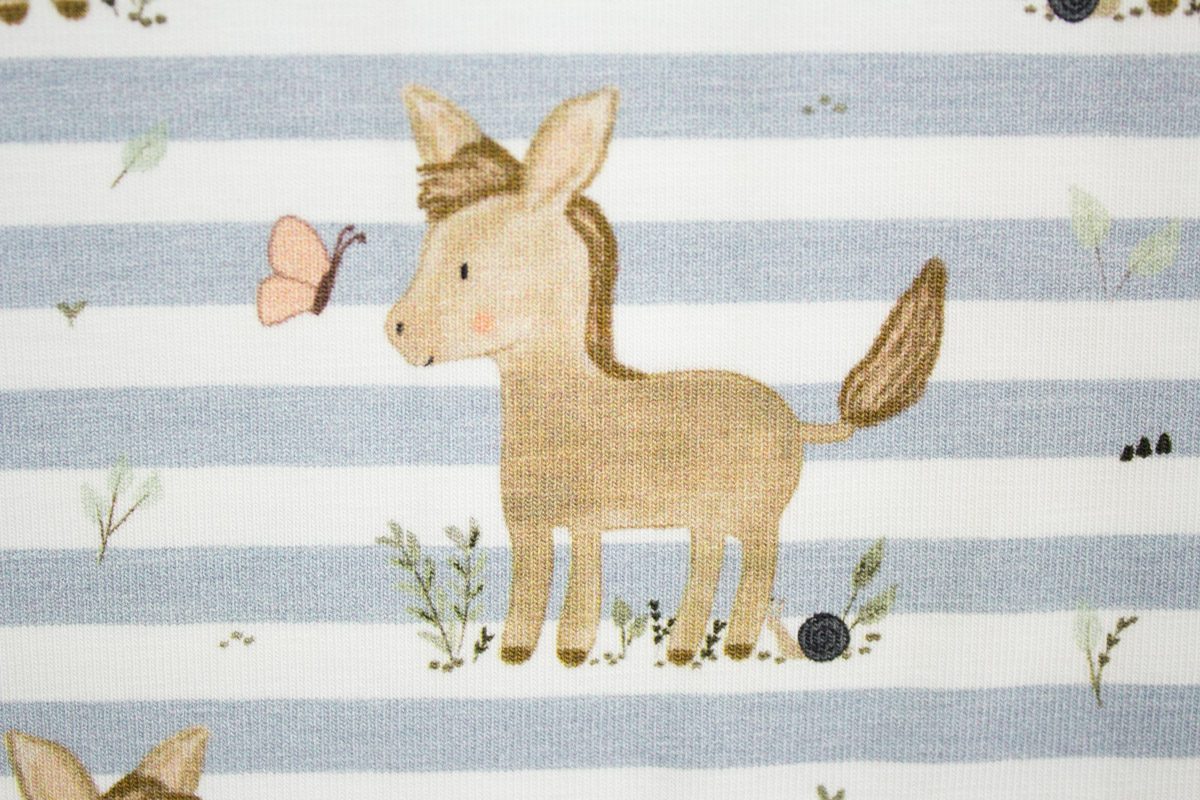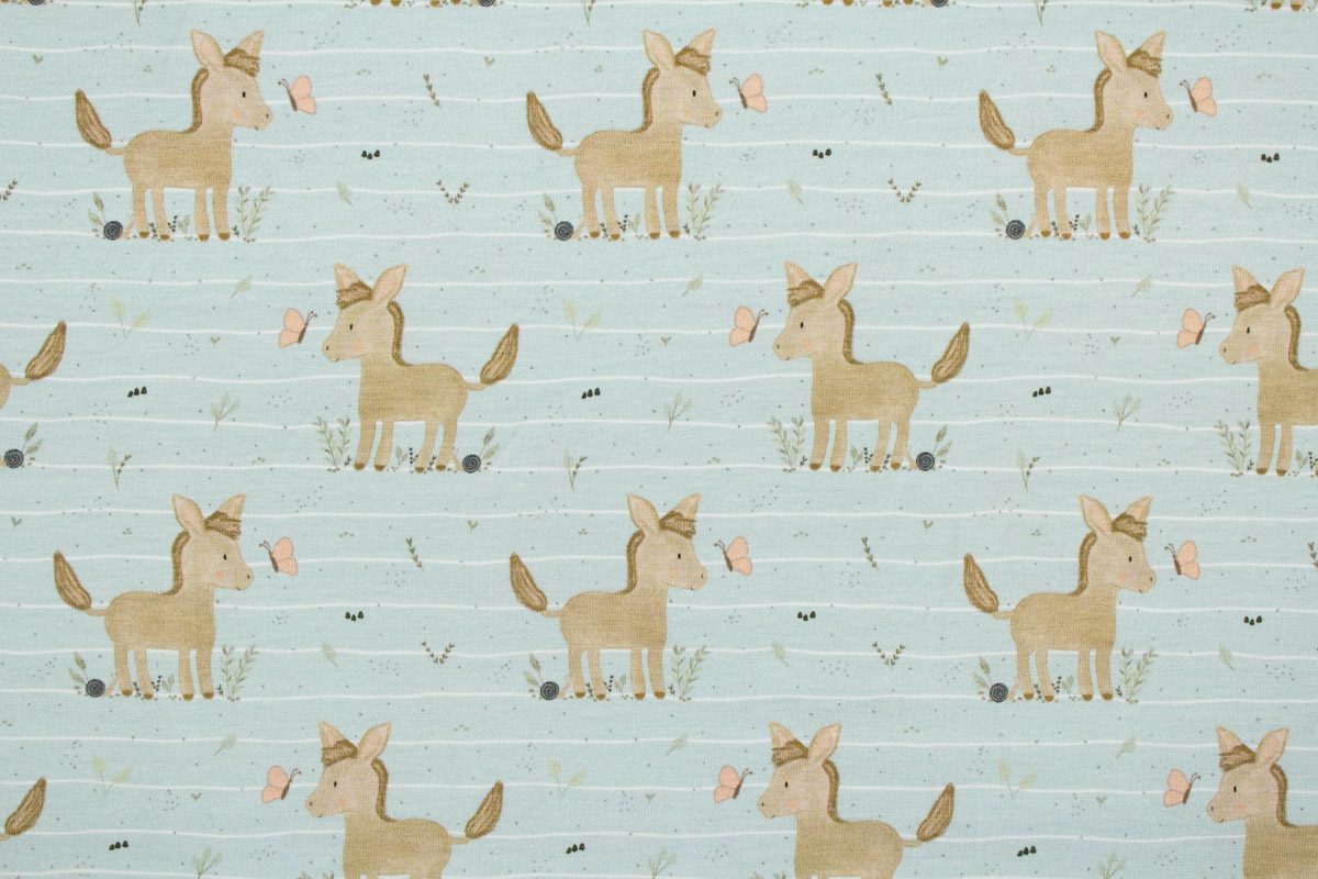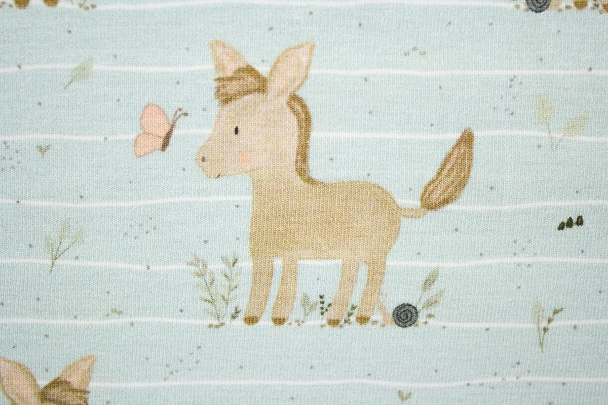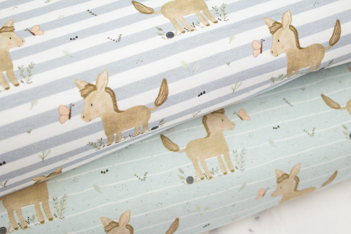 Zuckersüßes Motiv für Kinder mit kleinen Eselchen und Schmetterlingen auf verschiedenen Hintergründen.
