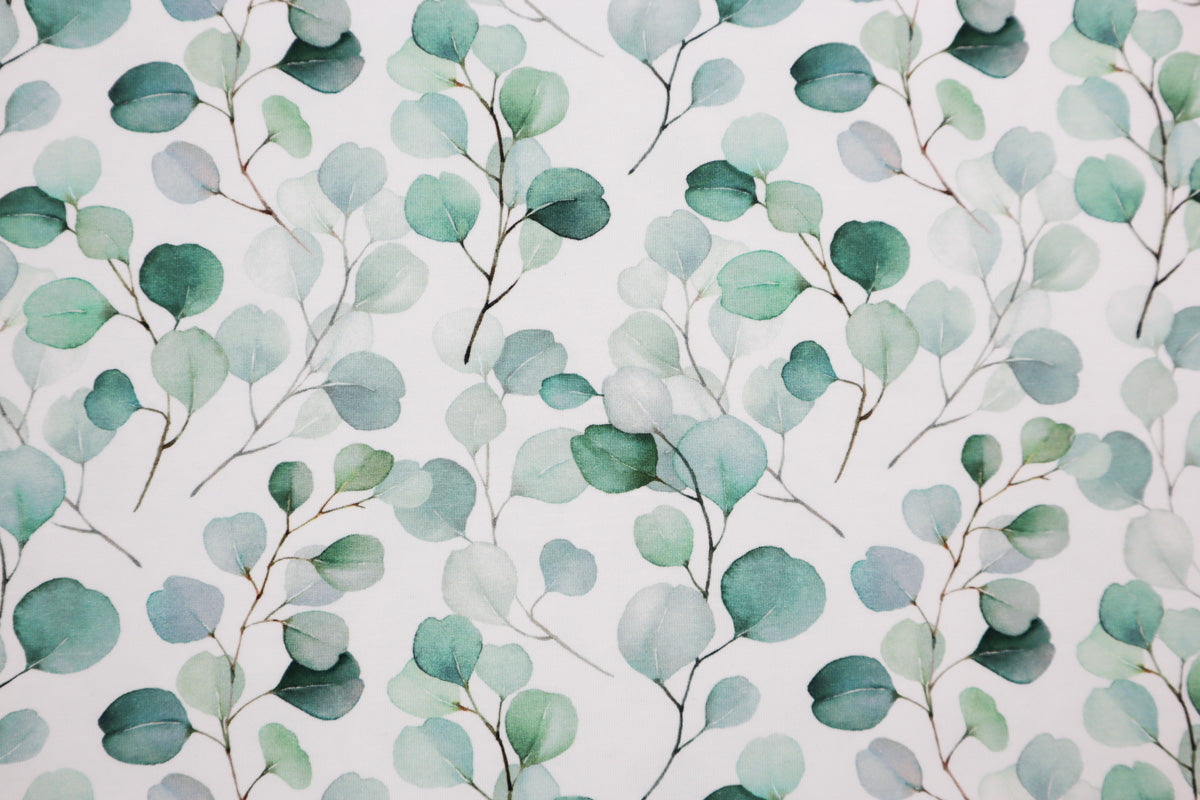 Schönes Muster mit den beliebten Eukalyptus Blättern auf weißem Hintergrung.