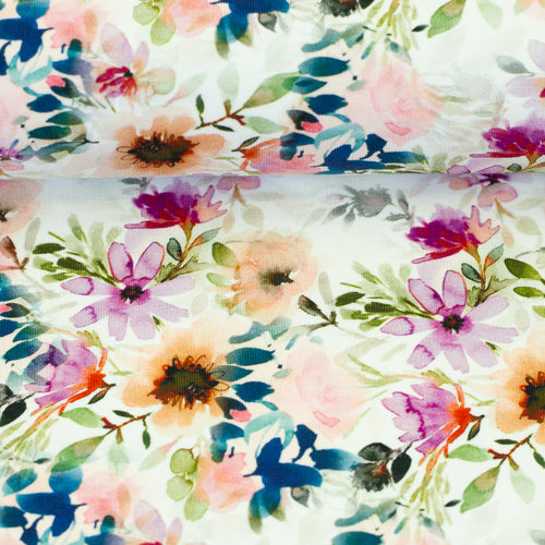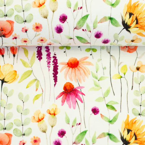 Hier ist der Name Programm und auf Jersey Flora blühen traumhafte Blumen und Blüten um die Wette. Aktuelle, leuchtende Farben und traumhafte Muster, allesamt auf hellem Grund: Es gibt ein Blumendesign mit Akzenten in Beere und Petrol, die größeren Blumen in Koralle und Flieder, die zarten Aquarell-Zweige und Blumen, schöne Blumen in Senf-Ocker- und Rosttönen sowie ein Wiesendesign mit Wiesenblumen und Mohnblumen.